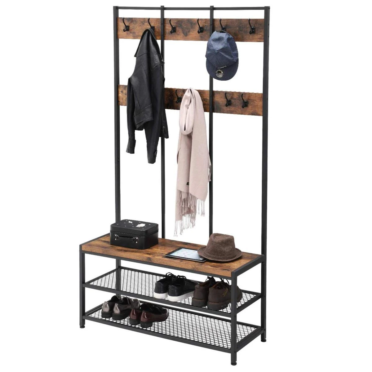 Je kan aan dit garderoberek verschillende jassen, tassen of hoeden kwijt. Op het bankje kan je jouw schoenen aantrekken. En onderaan dit rek heb je tenslotte plaats voor jouw schoenen. Praktisch, niet?