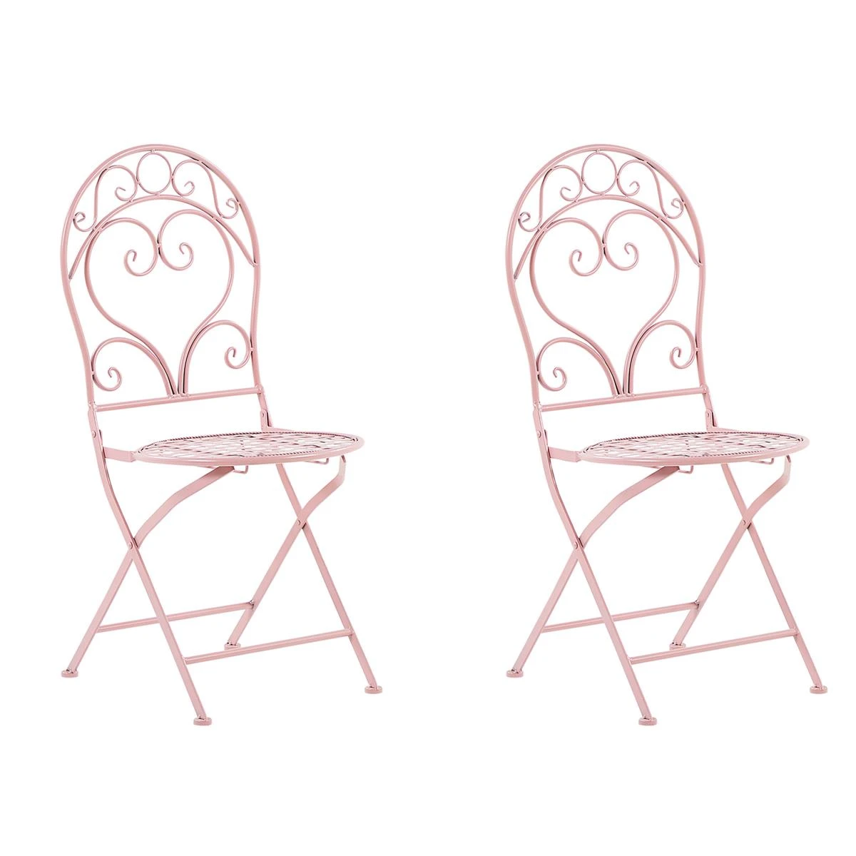 Prachtige 3-delige bistroset met een vintage touch maakt een opvallende toevoeging aan elke tuin of balkon. Het roze, poedergecoate frame met prachtig open scrollwerk straalt een romantische sfeer uit. Gemaakt van ijzer, is deze buiten set gemakkeli