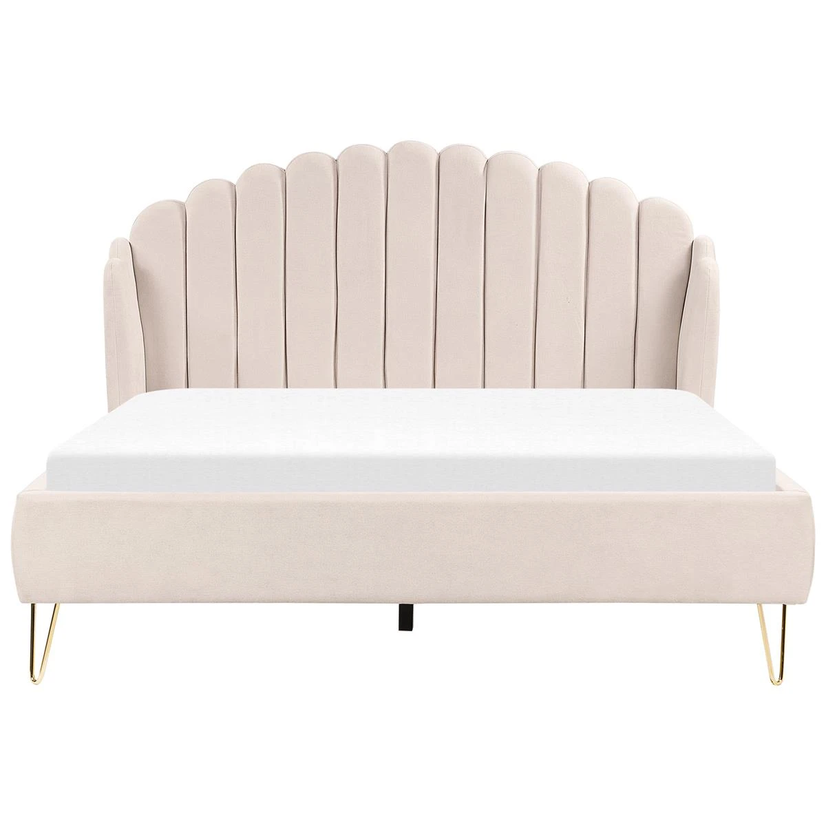 Maak kennis met het bed van je dromen. Dit met stof beklede tweepersoonsbed in een retro geïnspireerde stijl zal het pronkstuk van elke slaapkamer zijn. Compleet met gouden haarpin poten en een hoofdbord met gegroefde schelpen hoofdbord, zal het een