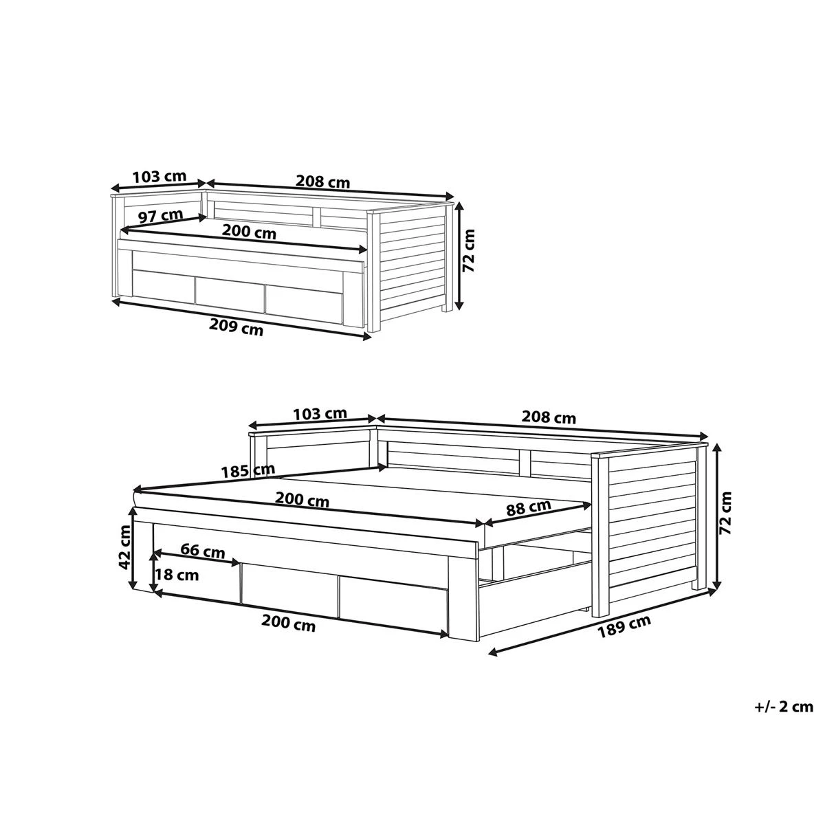 Dit comfortabele bed is qua functionaliteit moeilijk te verslaan. Het kan worden gebruikt als een eenpersoons- en een tweepersoonsbed en biedt ook extra ruimte voor de opslag van dekens, kussens en nog veel meer met de drie geïntegreerde bedboxen. H