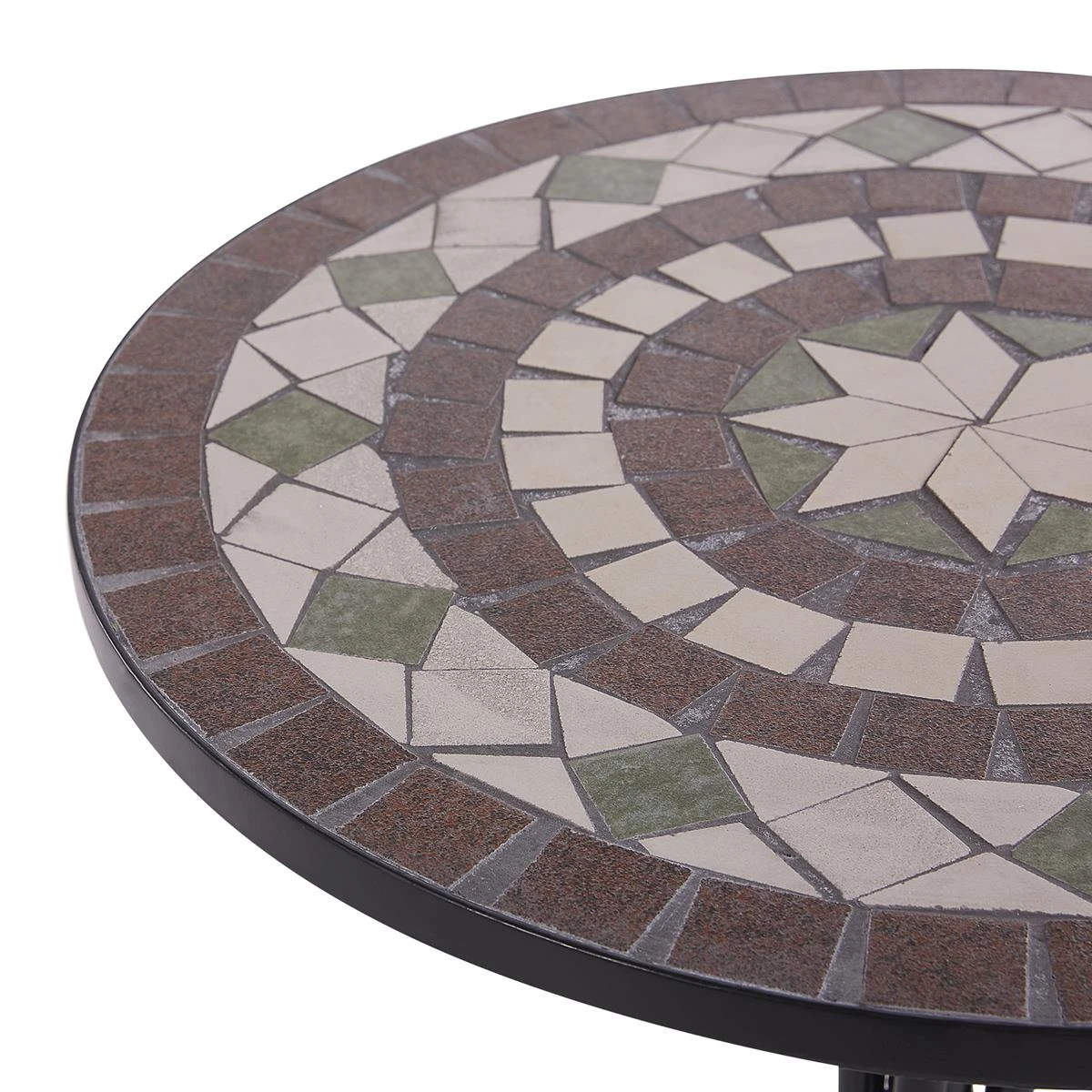 Geniet van een kopje thee in de zon met deze charmante bistroset voor buiten. Perfect voor kleine en grote ruimtes, het heeft gebeeldhouwde rugleuningen en een intrigerend mozaïekpatroon gemaakt van keramische tegels. Style het in je achtertuin of b