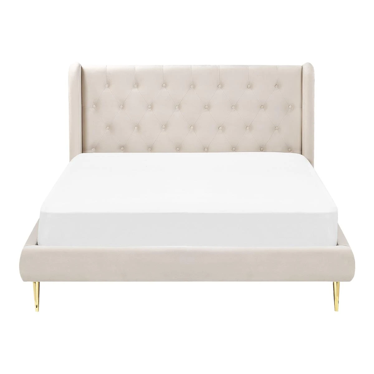 Breng een elegante flair in je slaapkamer met dit fluwelen bed. De hoogwaardige, slijtvaste bekleding met een zeer aangenaam gevoel in combinatie met stabiele metalen poten in goud straalt rust en exclusiviteit uit. Het moderne design wordt benadruk