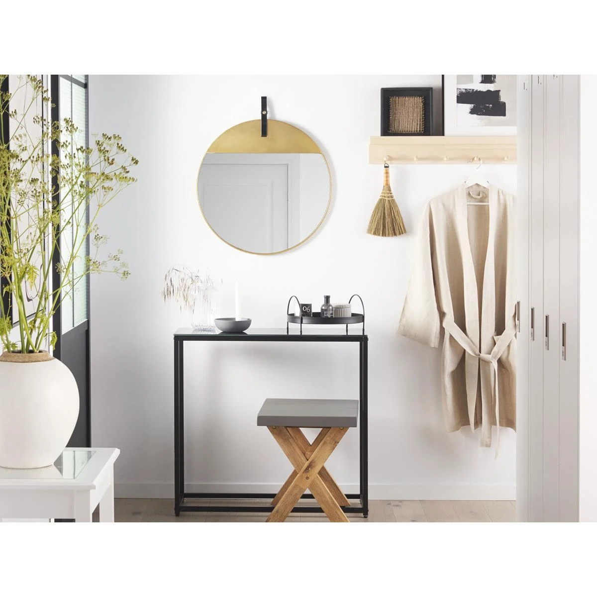 Voeg een vleugje glam toe aan je interieur door het te decoreren met deze ronde spiegel in goudkleur. Het hoogwaardige glas en ijzeren frame garanderen duurzaamheid voor de komende jaren. De spiegel werkt goed als een opvallend accentstuk in elke sl