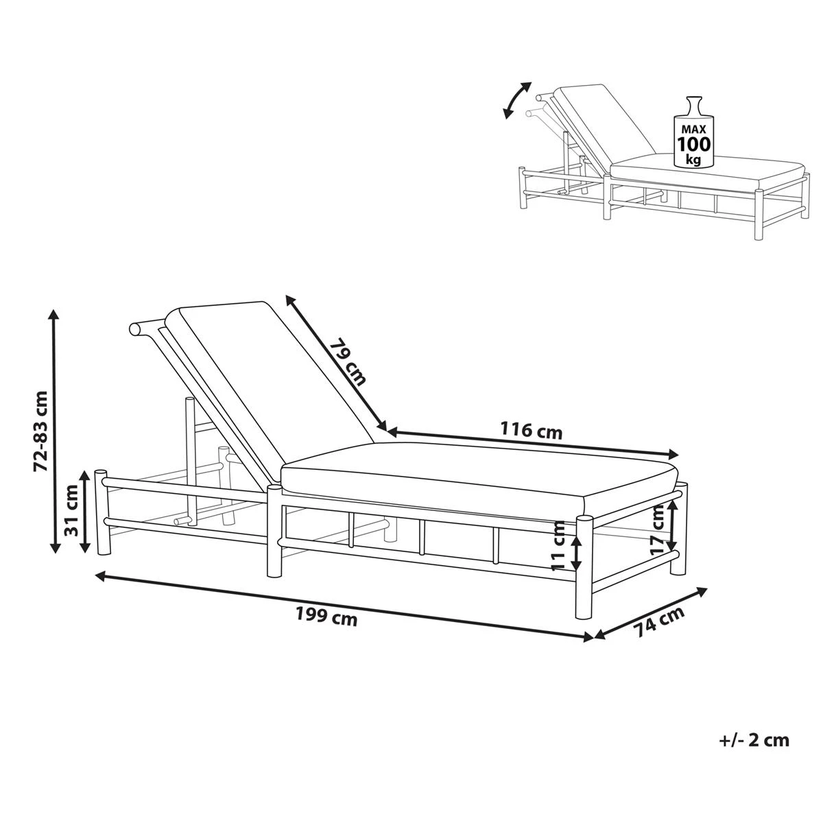 Aanbod omvat: 1 x Ligstoel, 1 x Rugkussen, 1 x Zitkussen
