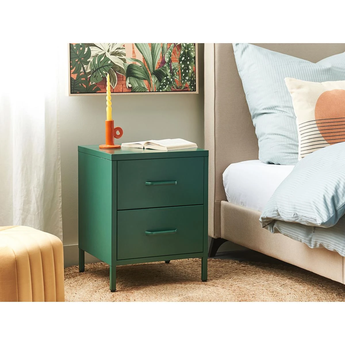 Dit nachtkastje is een perfecte manier om je slaapkamer te upgraden. Het nachtkastje is gemaakt van duurzaam en onderhoudsvriendelijk staal en gaat jarenlang mee. Het beschikt over 2 lades, die kunnen worden gebruikt om je ondergoed, boeken of ander