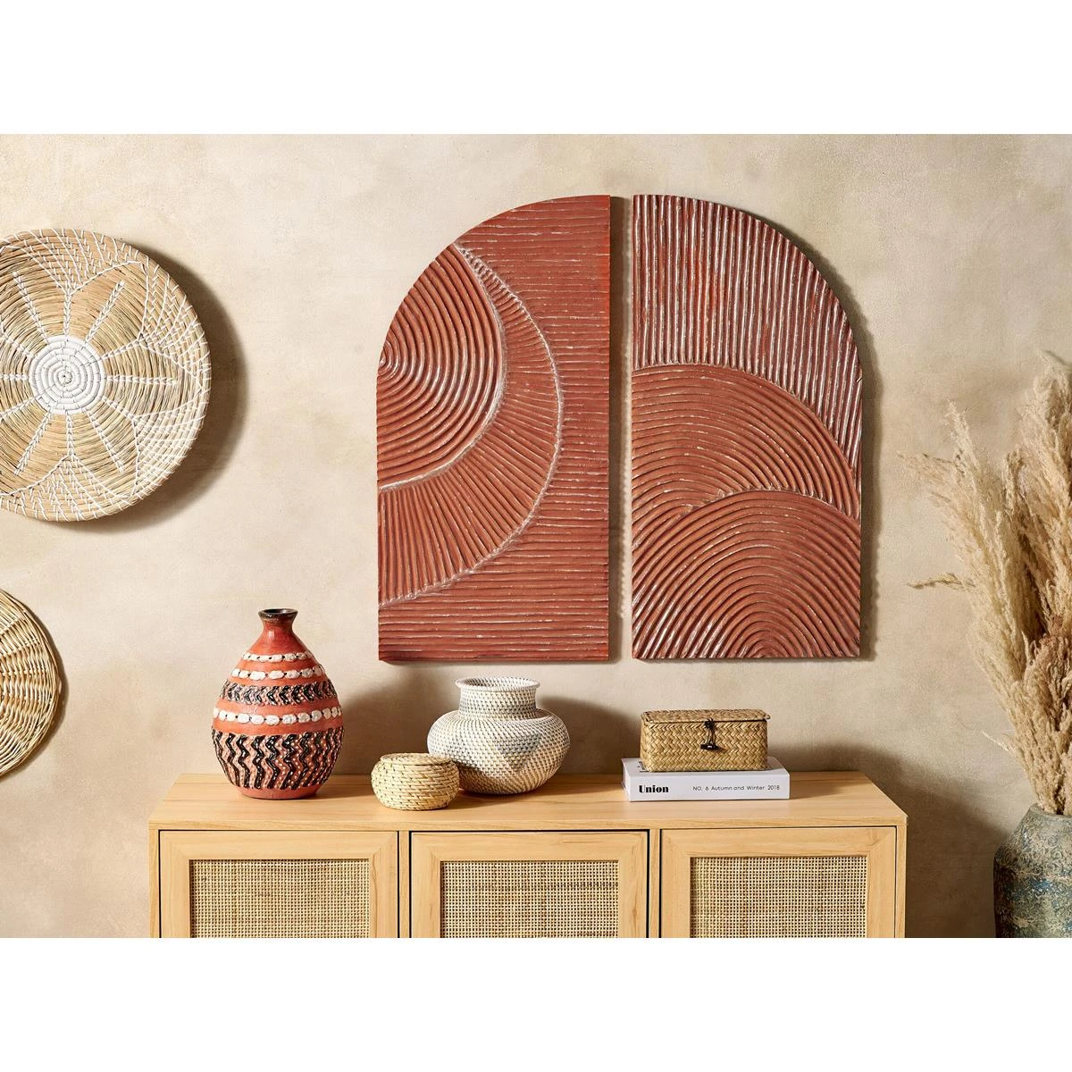 Breng een Afrikaanse stijl in je interieur met deze wanddecoratie. Het accessoire is gemaakt van hoogwaardig materiaal en heeft een uitgesneden patroon met een verweerd effect dat uniek en exotisch is. De donkerrode kleur zal elk interieur opvrolijk