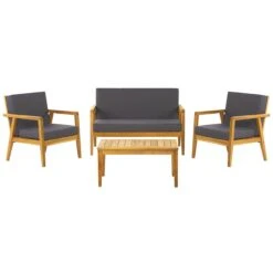 Zorg dat je klaar bent voor alle aankomende vrienden- en familiebijeenkomsten en creëer een perfecte lounge in je achtertuin met dit 4-delige set. Het set wordt geleverd met een salontafel, twee fauteuils en een 2-zitsbank, allemaal met bijpassende