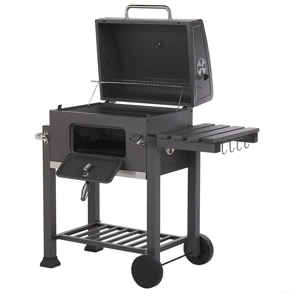 Deze houtskoolgrill voegt functionaliteit toe aan elk BBQ feestje. Gemaakt van een zwaar stalen frame, wat voor stabiliteit zorg, en afgewerkt met een poedercoating. Dankzij de geïntegreerde wielen verplaats je deze gemakkelijk van plek naar plek. D