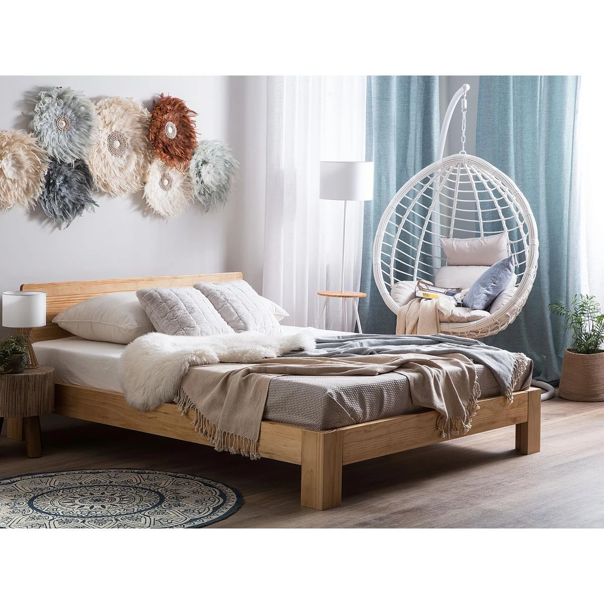 Eenvoudig ontwerp met groot effect. Dit houten bed maakt indruk met zijn natuurlijke charme. Door het ontwerp van het hoofdeinde kan het bed in het midden van de kamer worden geplaatst. Het stevige frame van massief grenen hout met lattenbodem zorgt