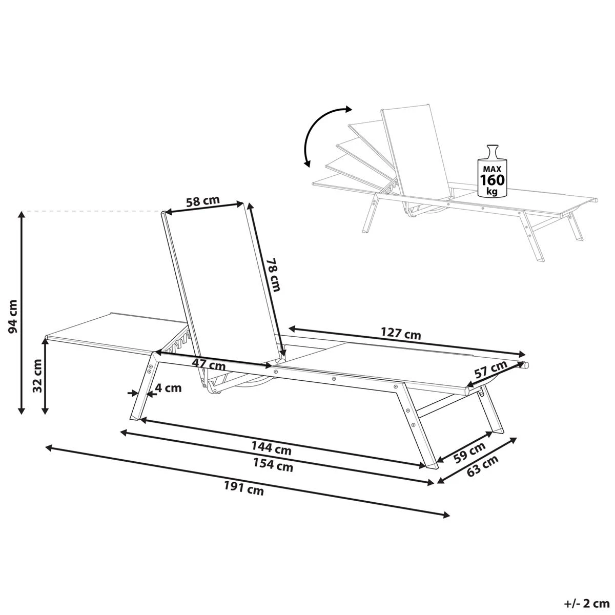 Geniet van het mooi weer en de zon terwijl je ligt op dit ligbed voor buiten. Het is gemaakt van textielvezels en staal, waardoor het extreem duurzaam en gemakkelijk schoon te maken is. Het product is ook UV-bestendig, dus je hoeft je geen zorgen te