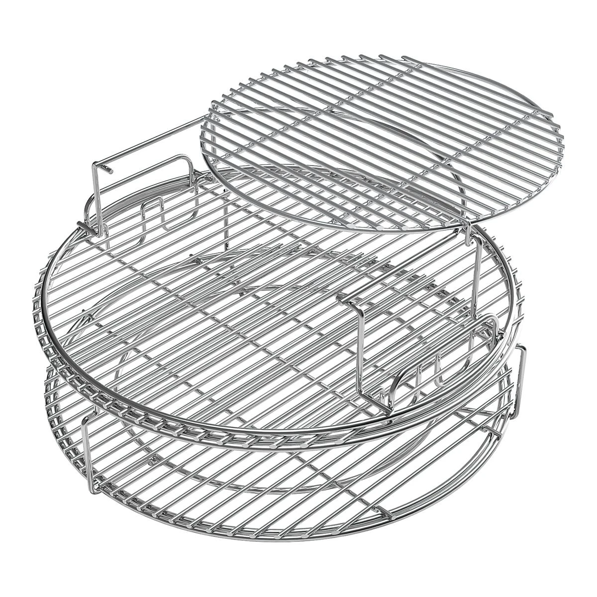 Laat jouw barbecuecreativiteit maar de vrije loop! Dit systeem maakt talloze opstellingen mogelijk om op meerdere niveaus zowel direct als indirect te grillen. De EGGspander bevat een Multi Level rek, een convEGGtor basket en twee halve RVS roosters.