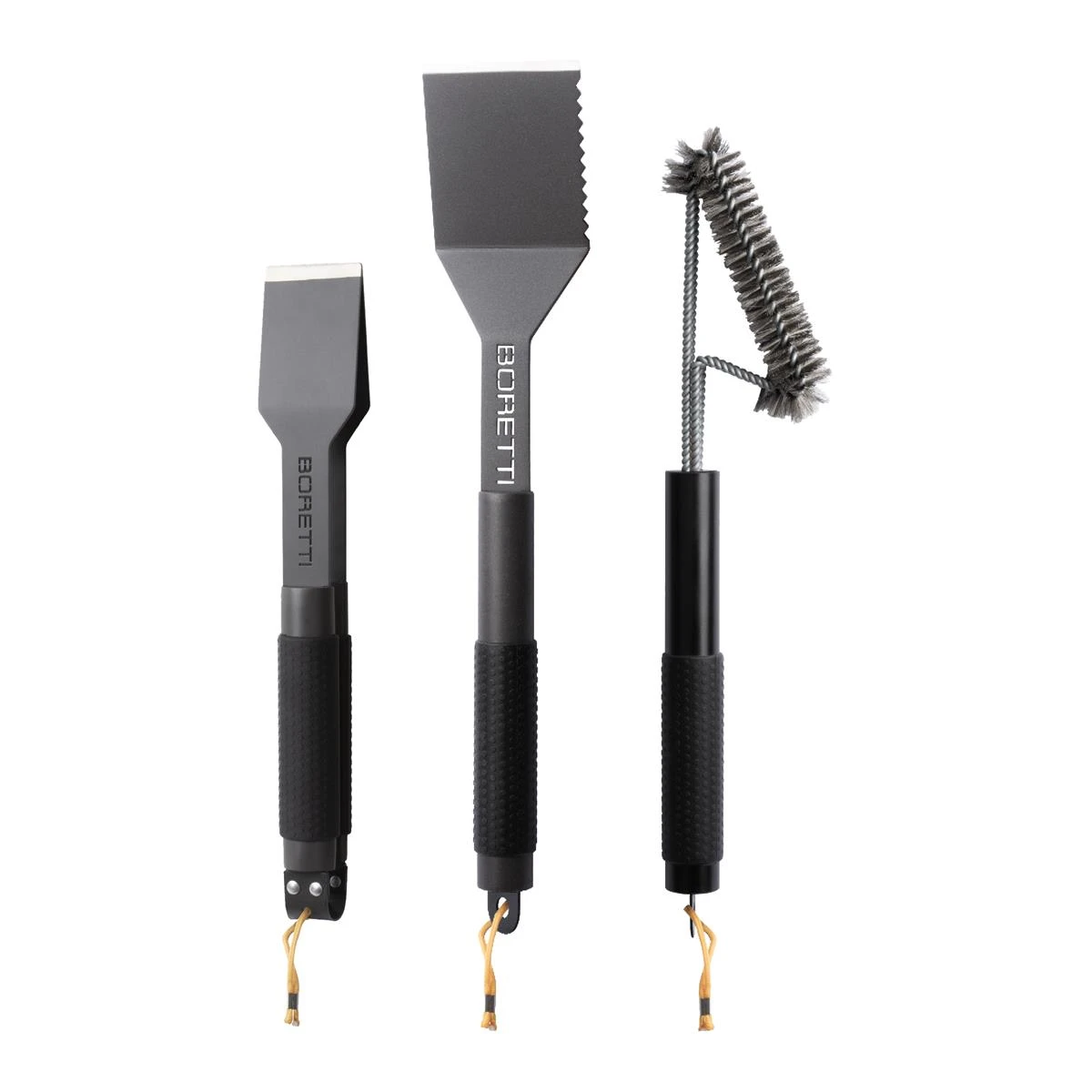 Deze basisset van Boretti heeft het allemaal: een spatel, tang en borstel. Vlees en ingrediënten losmaken, omdraaien of insmeren wordt nu een stuk makkelijker. Met deze set heb je altijd een passende tool bij de hand tijdens elke barbecue sessie.