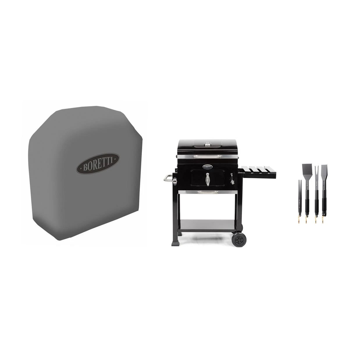 - Set bestaande uit de Boretti Carbone houtskool barbecue, hoes en spatels