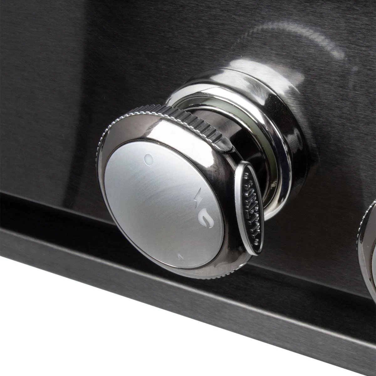 - Voorzien van 4 krachtige branders, infrarood-achterbrander én gegoten messing zijbrander
