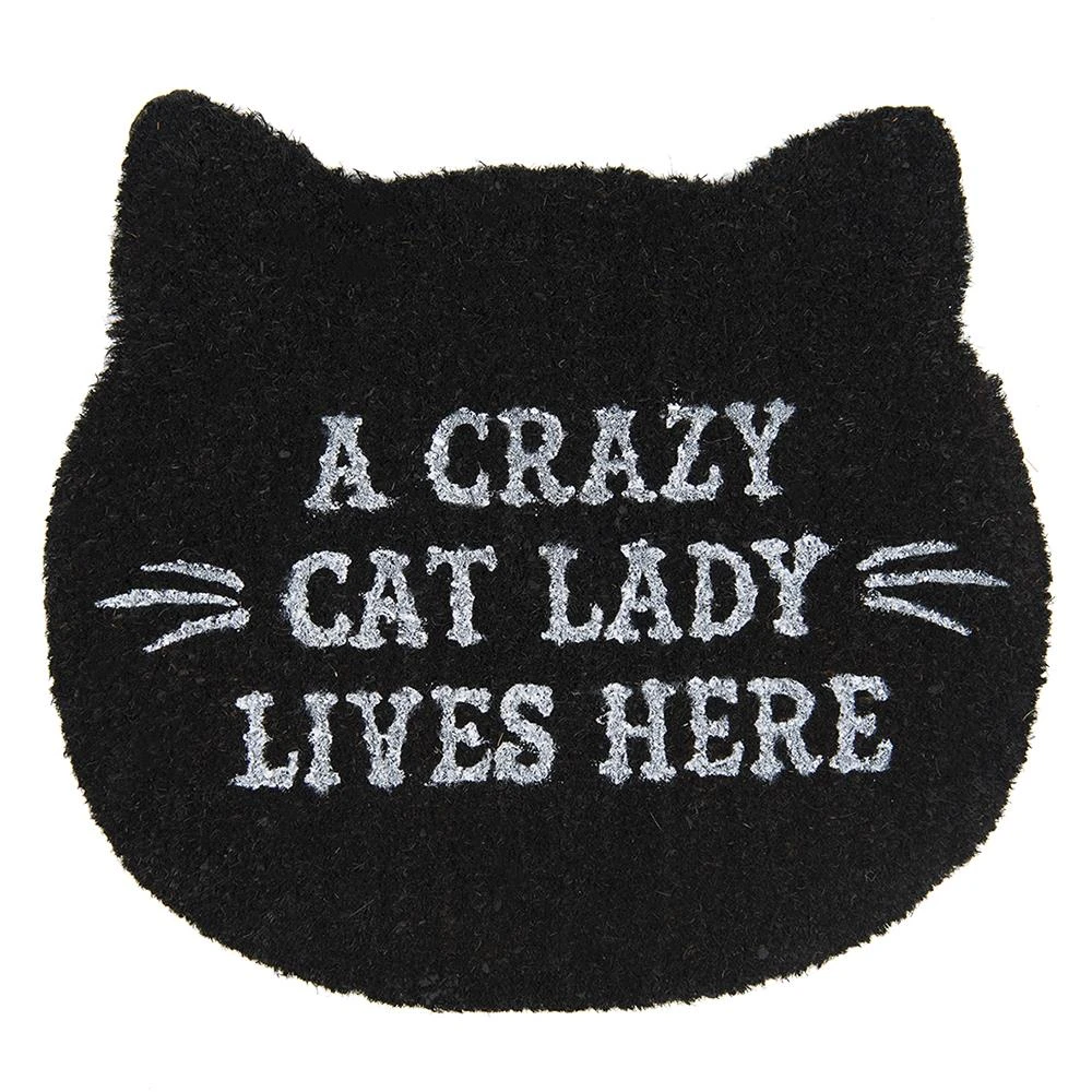 Zwarte kokos deurmat met de tekst “Crazy cat lady…” van het merk Clayre & Eef. Kokosmat Mat Schoonloopmat