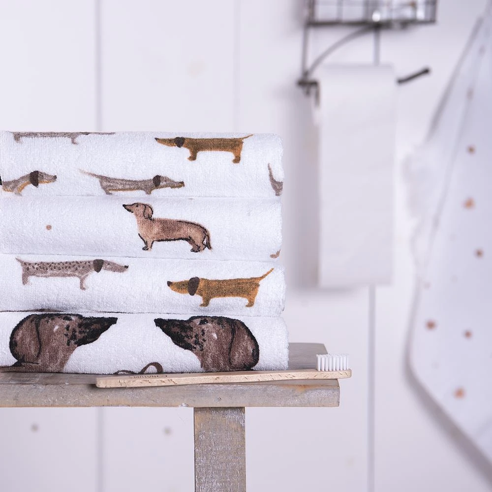 Gastendoekje, toilet handdoek van katoen met een print van bruine teckels van het merk Clayre & Eef.