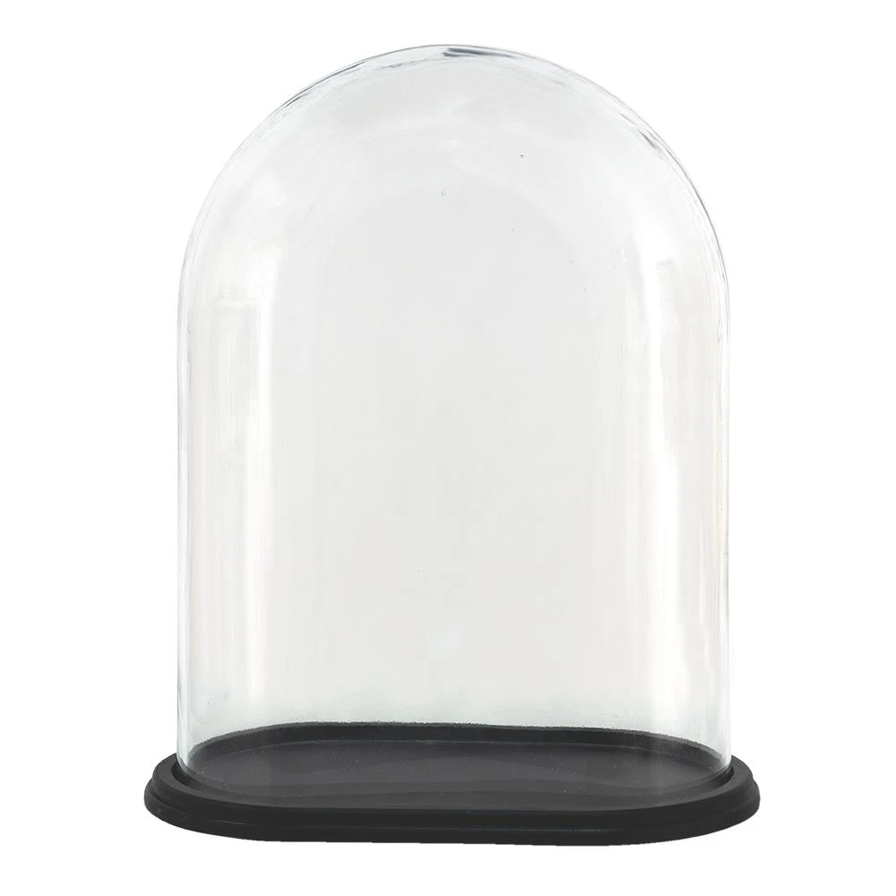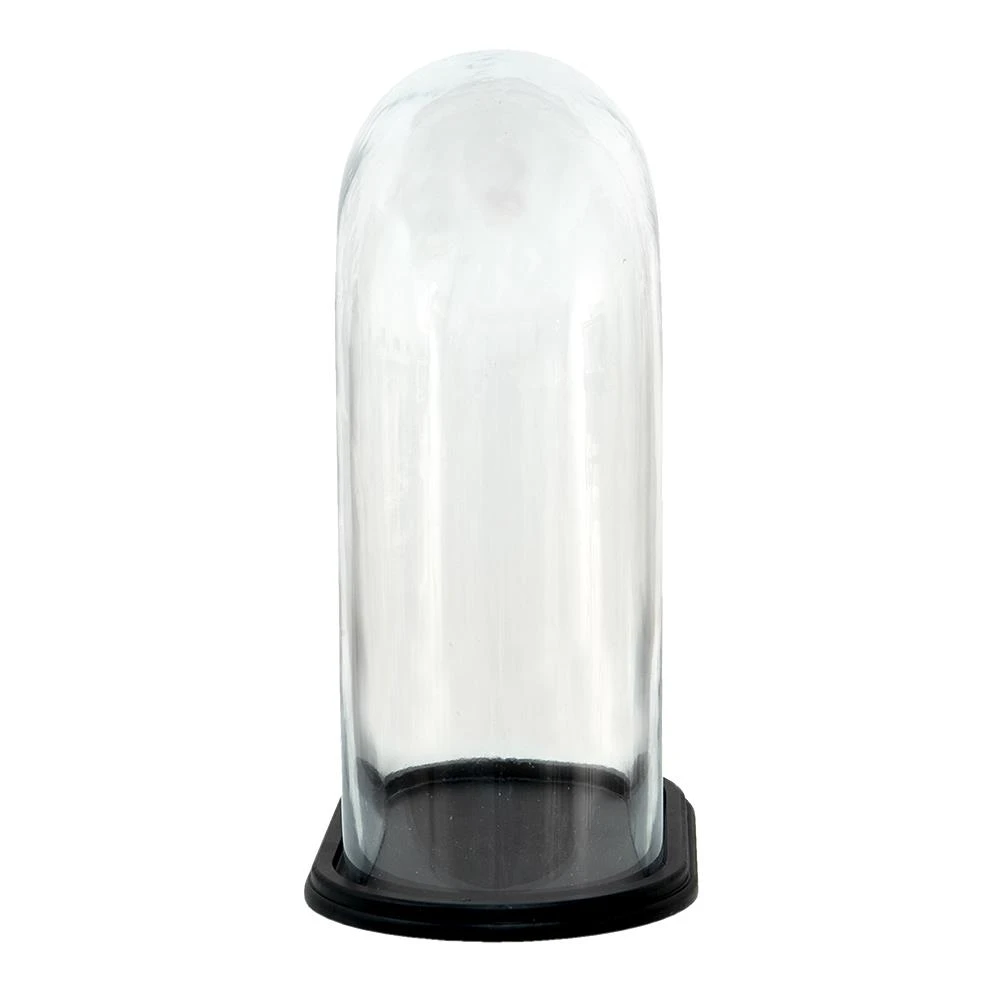De glazen bel is 40 cm in hoogte (incl. de basis) en heeft een totale basis diameter van 34×20 cm. De binnen diameter van het glas is 30×16 cm en hoogte van het glas is 38 cm.