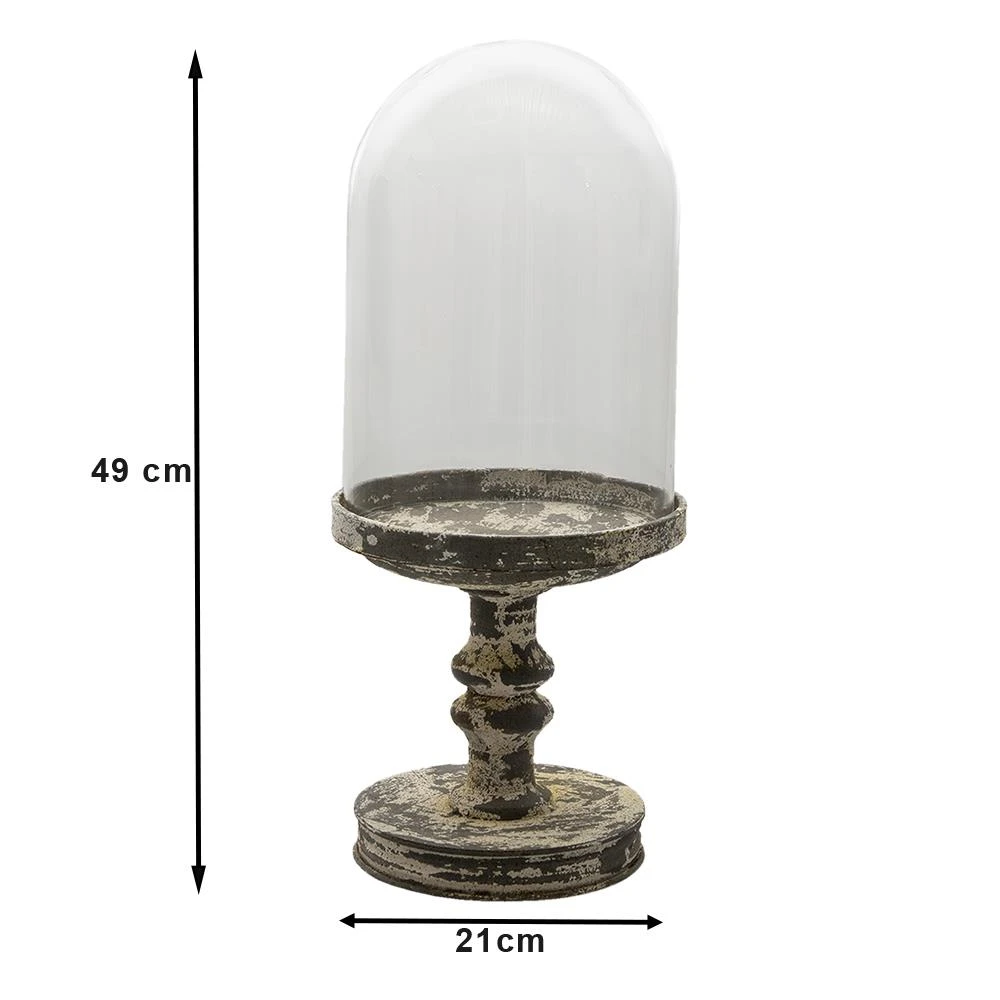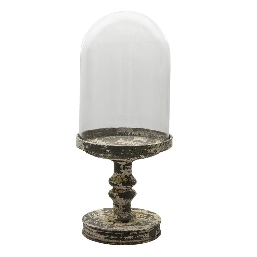 Glazen landelijke stolp op een metalen voet van het merk Clayre & Eef. Let op, deze glazen zijn ambachtelijk geproduceerd. Hierdoor kan het voorkomen dat er een luchtbelletje of een streepje in het glas zit.