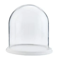 De glazen bel is 23 cm in hoogte (incl. de basis) en heeft een totale basis diameter van 23 cm. De binnen diameter van het glas is 20 cm en hoogte van het glas is 21 cm.
