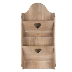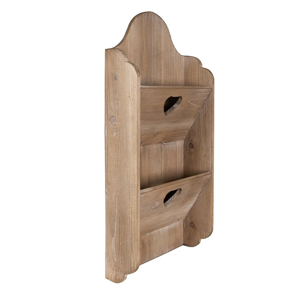 Mooi landelijk bruin houten tijdschrifthouder voor aan de muur met een hartje verwerkt in de 2 vakken van 26×19 cm. Om het wandrek op te hangen zijn er 2 schroeven nodig, deze zijn niet inbegrepen.