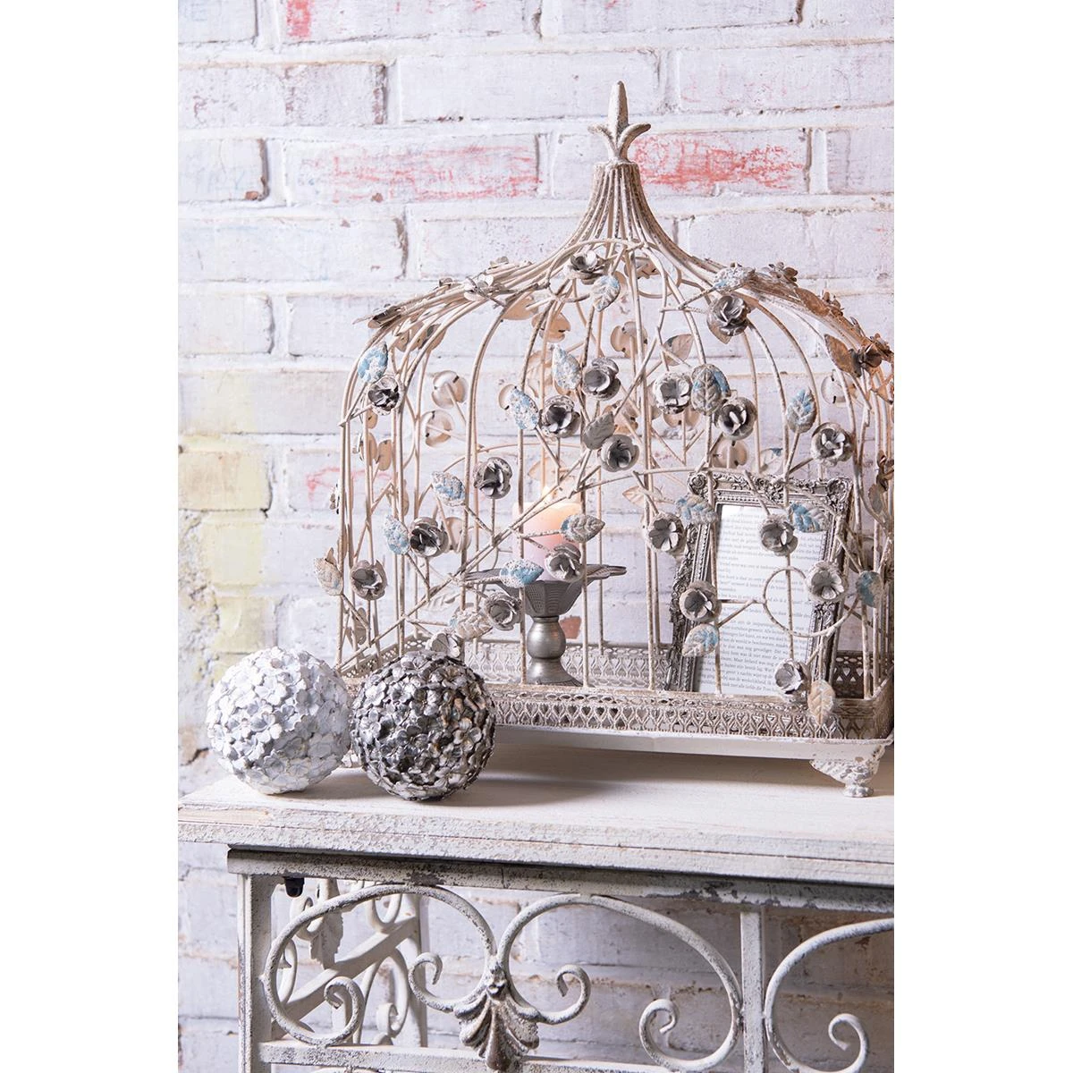 Clayre & Eef Vogelkooi decoratie 42x21x50 cm Wit Ijzer Rechthoek Bloemen