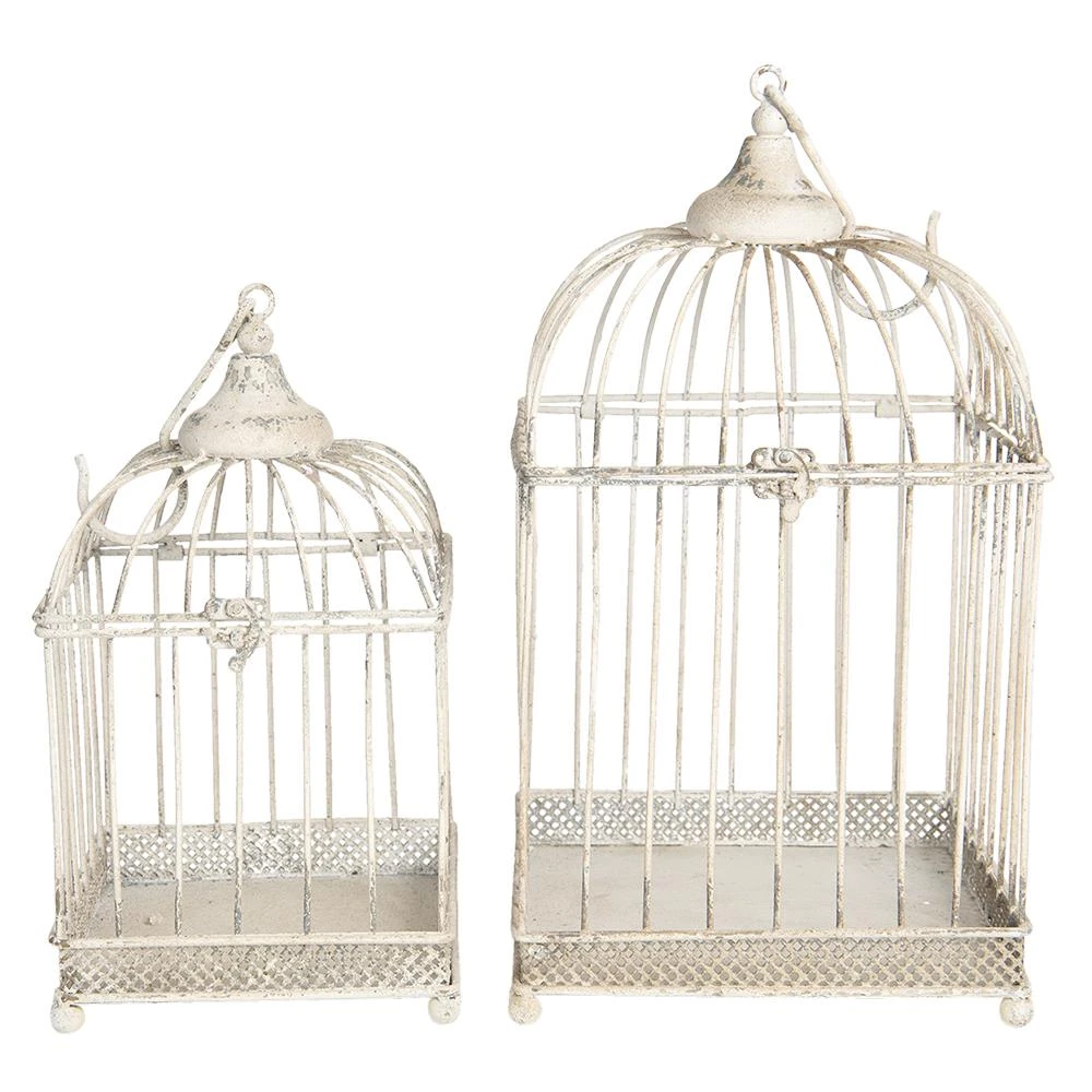 Set van twee wit metalen vintage decoratieve vogelkooien van het merk Clayre & Eef