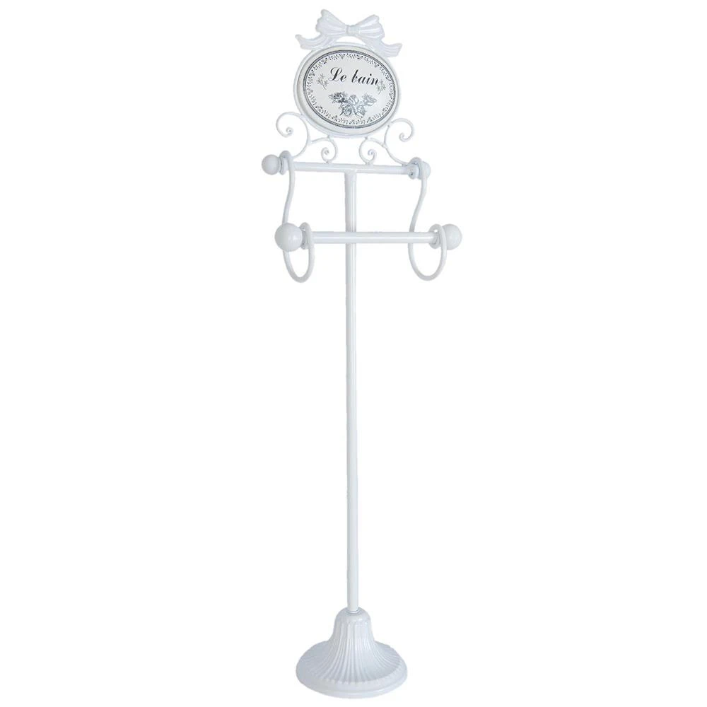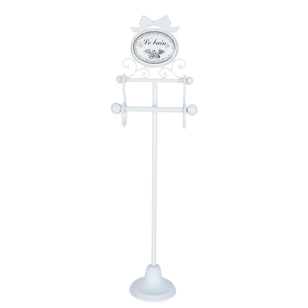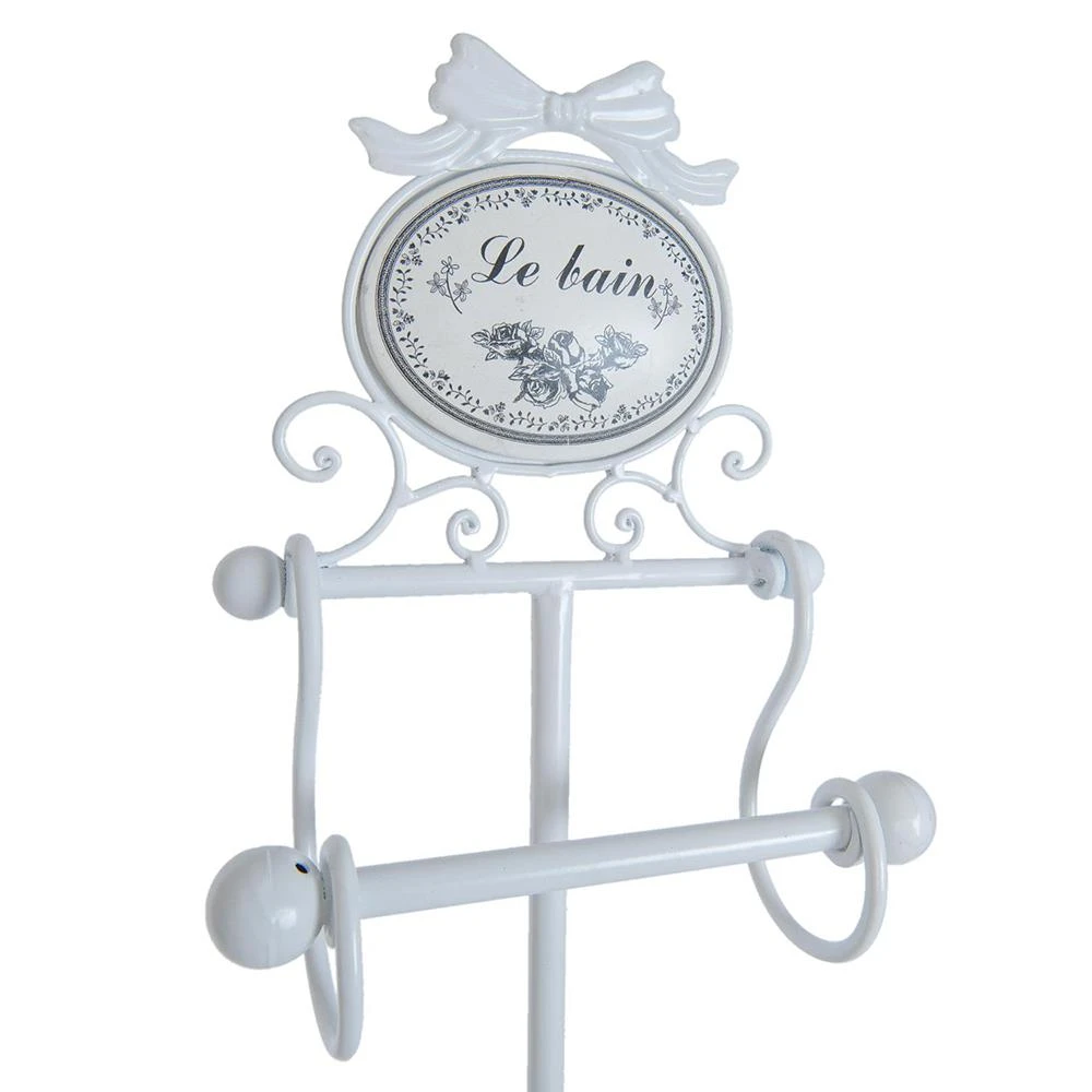 Wit metalen vintage toiletrol houder met een strikje erop van het merk Clayre & Eef Toiletrolhouder Toiletpapierhouder Toiletrol houder
