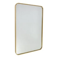 Gave rechthoekige spiegel met gouden metalen rand. Door de subtiele en stoere afwerking komt de spiegel aan iedere muur tot zijn recht!