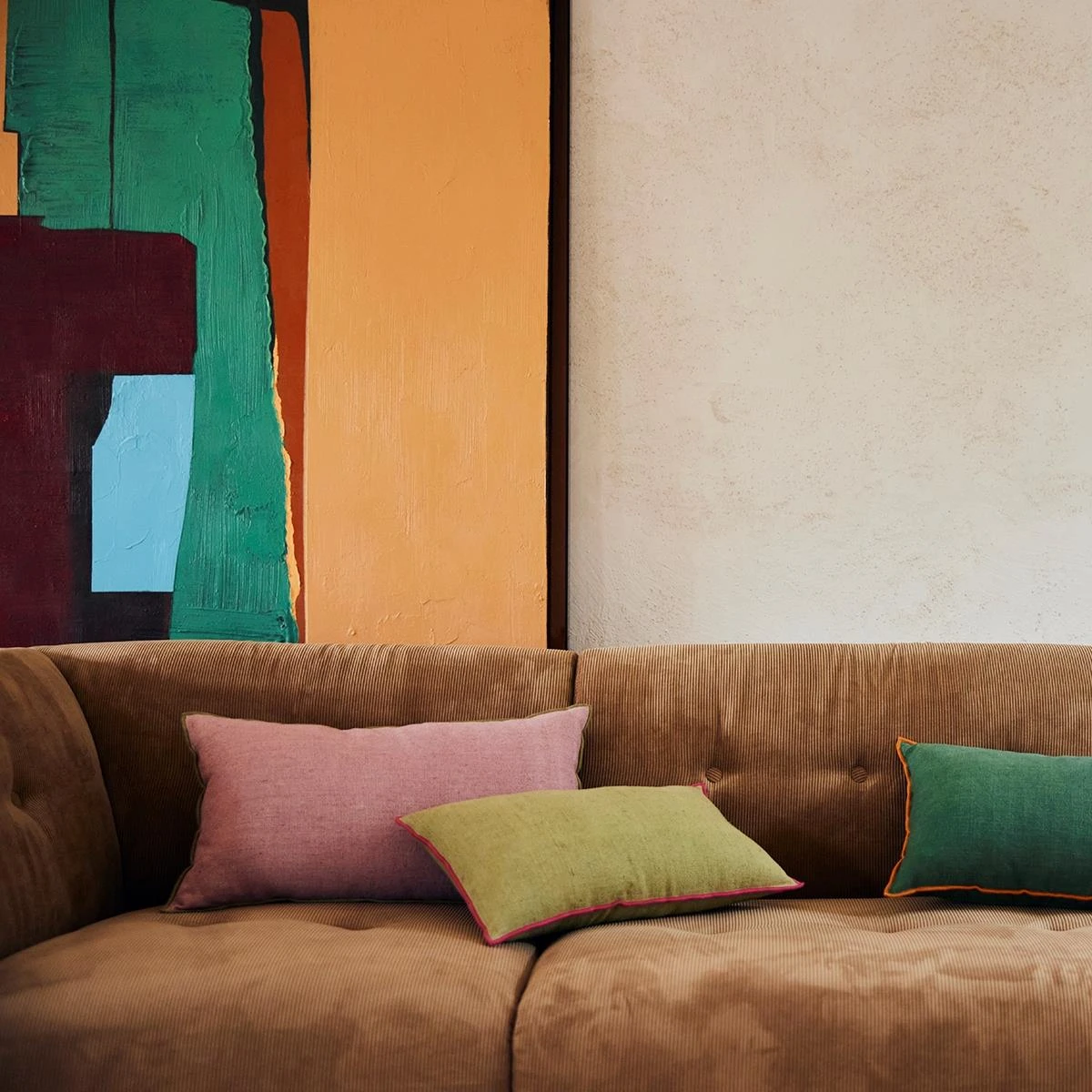 Vrolijk je bank of fauteuil op met dit kleurrijke sierkussen van HKliving. Hij is gemaakt van zacht linnen met katoen en heeft een contrast dankzij het gekleurde randje, hip! Uitermate geschikt om op de lange luieravondjes lekker tegenaan te kruipen.