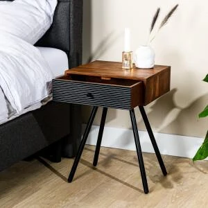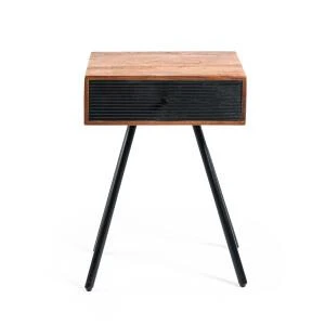 Dit leuke nachtkastje is niet alleen heel praktisch maar is ook nog eens een echte eye-catcher in jouw slaapkamer. Dit stijlvole nachtkastje is gemaakt van hoogwaardig walnoothout en is voorzien van 1 lade. Handig dus om dingen in op te bergen. Daarnaast biedt het kastje genoeg ruimte voor een wekker of eventuele accesoires. Het nachtkastje is voorzien van een stalen onderstel die zwart gepoedercoat is. Een super trendy item dat toch in verschillende stijlen tot zijn recht komt.Â