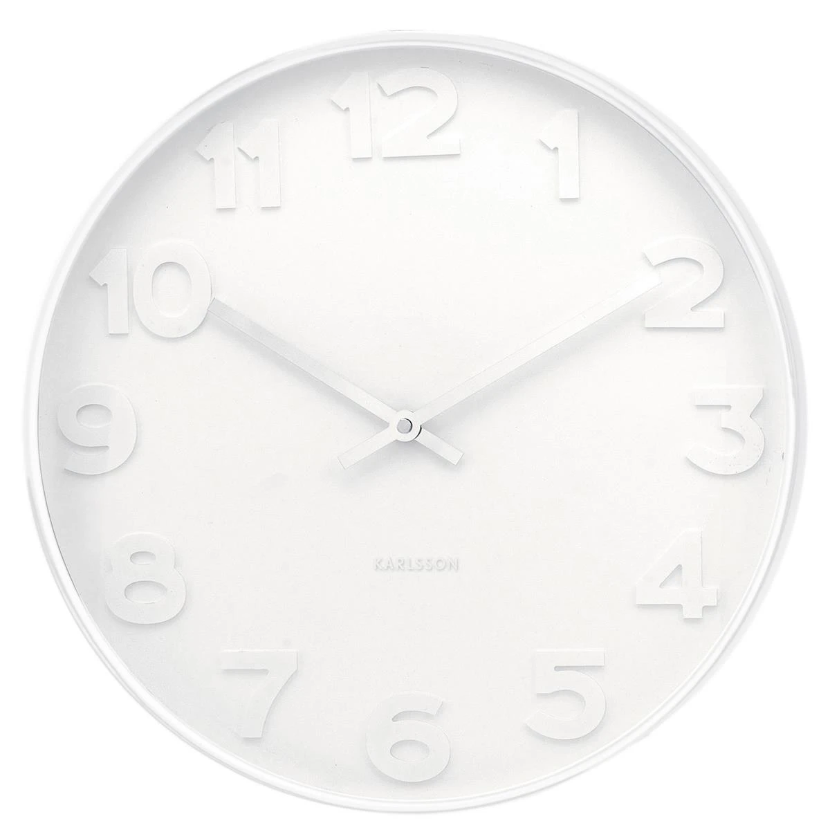 De naam van de Mr. White Numbers wandklok van Karlsson verklapt al waar deze klok zijn frisse look aan dankt: de witte cijfers! Deze hebben namelijk dezelfde kleur als de witte wijzerplaat. Hierdoor krijg je een mooi, stijlvol effect aan jouw muur.