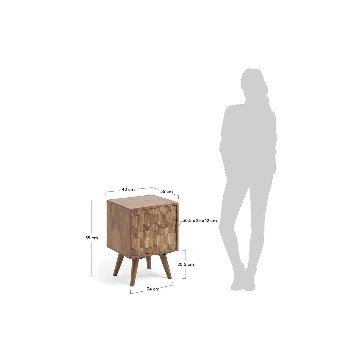 Hoe je bed ook staat je zult altijd willen dat de Khaleesi dichtbij is. Een nachtkastje van massief acaciahout met een uniek ontwerp, geïnspireerd op de zichtbare geometrische vormen die in het hout zijn uitgehouwen om diepte te creëren.