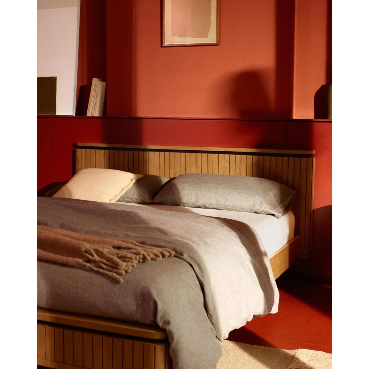 Licia bed van massief mangohout en zwart gelakt metaal, voor een matras van 160 x 200 cm
