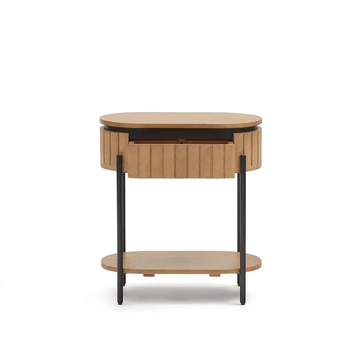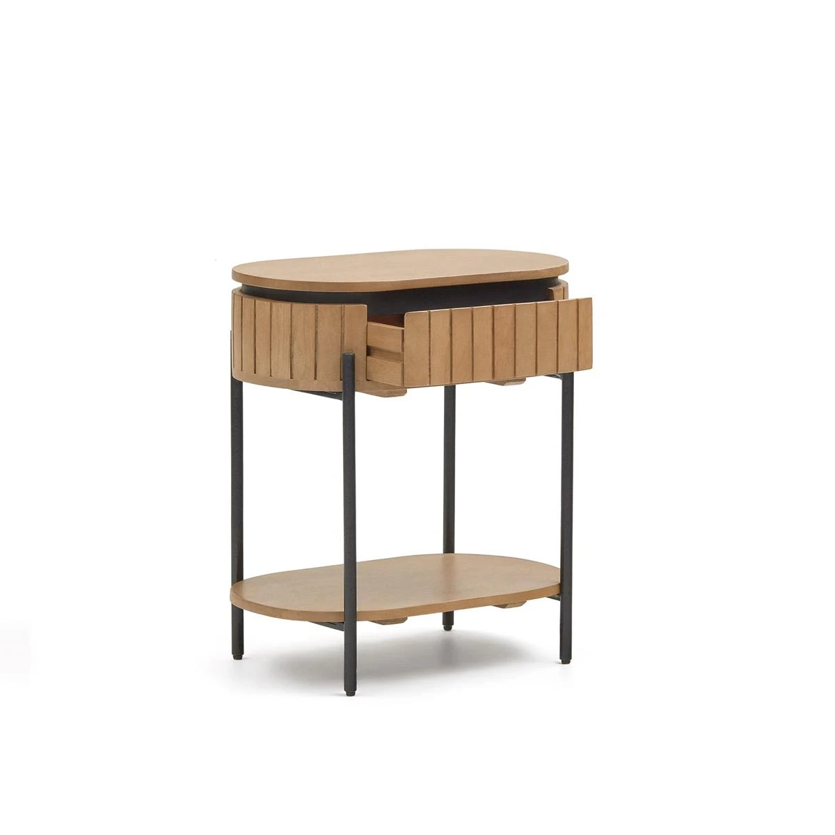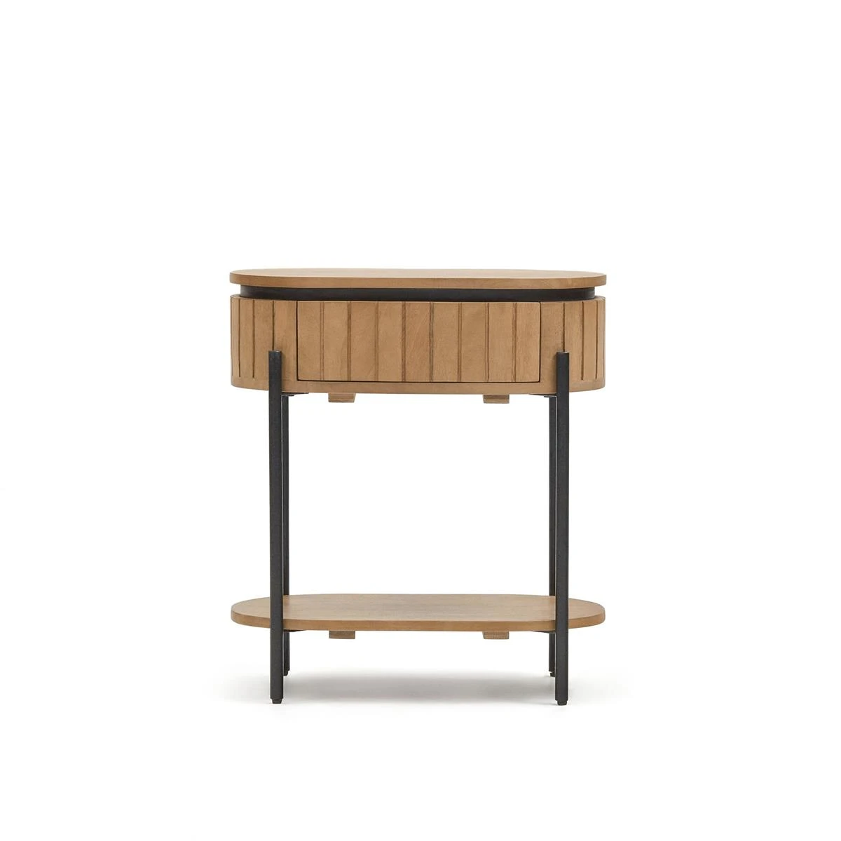 Licia nachtkastje met 1 lade in massief mangohout en zwart gelakt metaal 55 x 65 cm