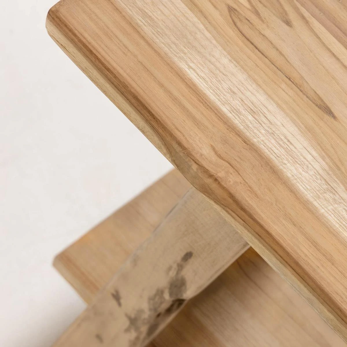 Deze bank is gemaakt van gerecycled teakhout en is vochtbestendig. Het is een unieke bank door zijn eigen tinten en houtnerven. Je kan hem zowel binnen als buiten gebruiken, leuk als decoratie!