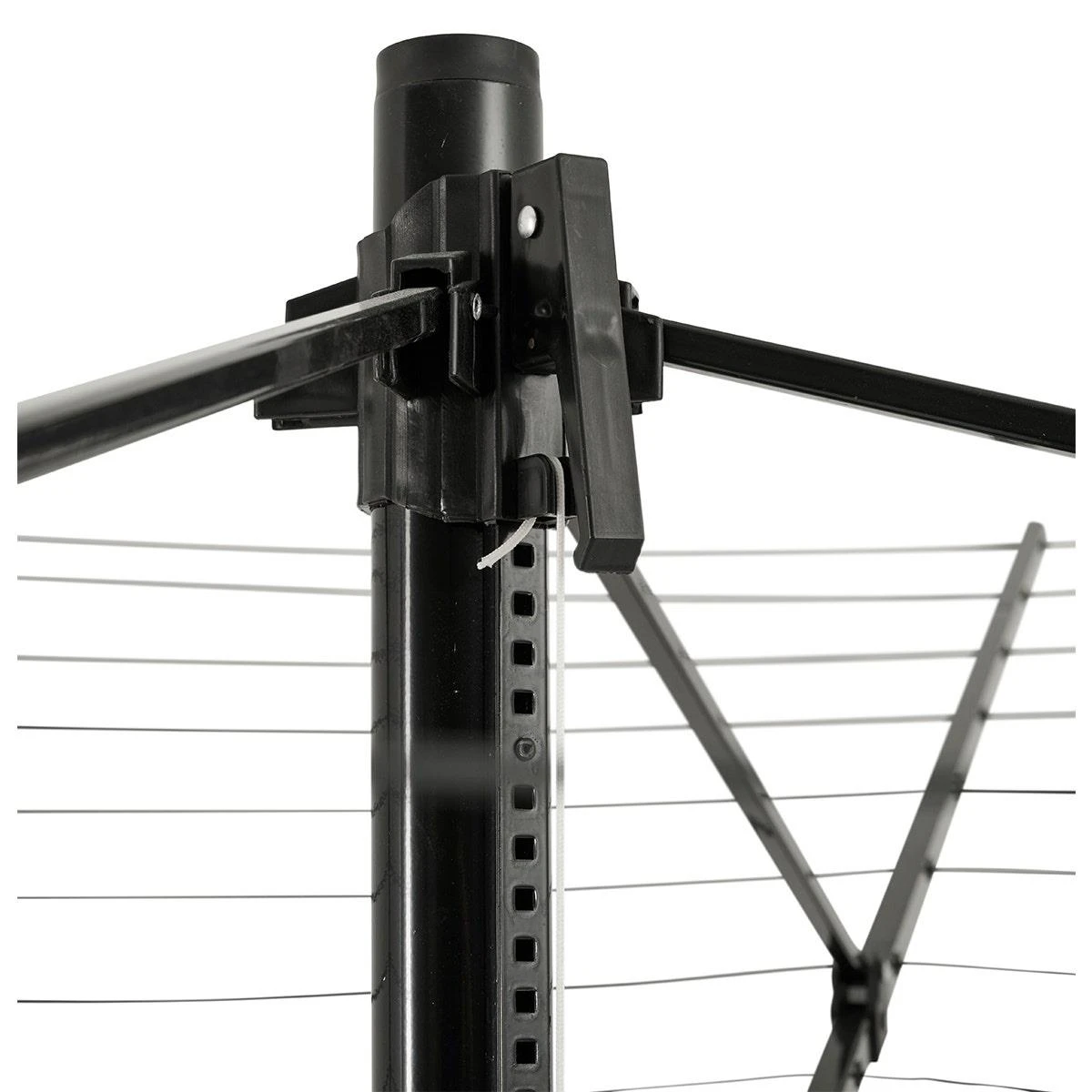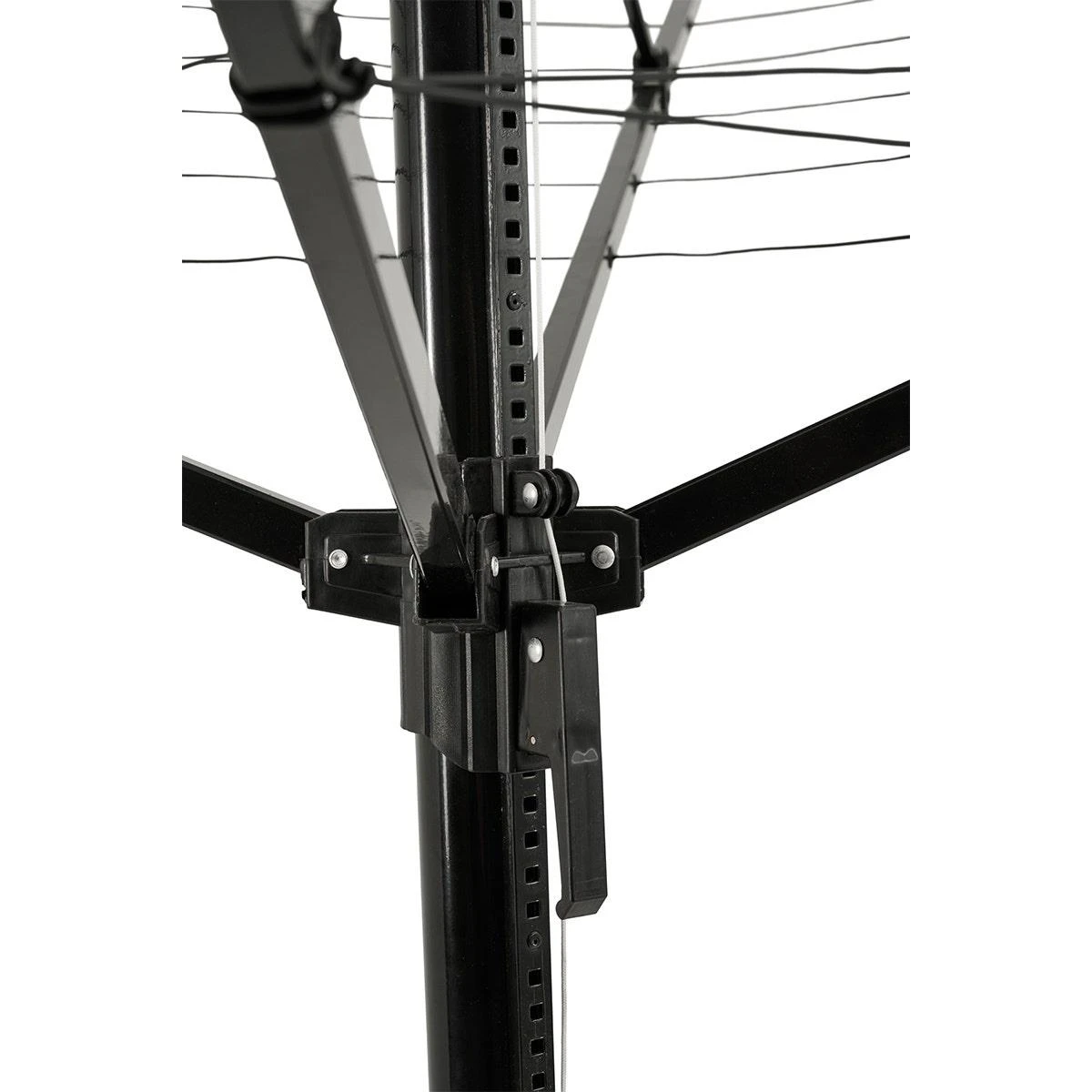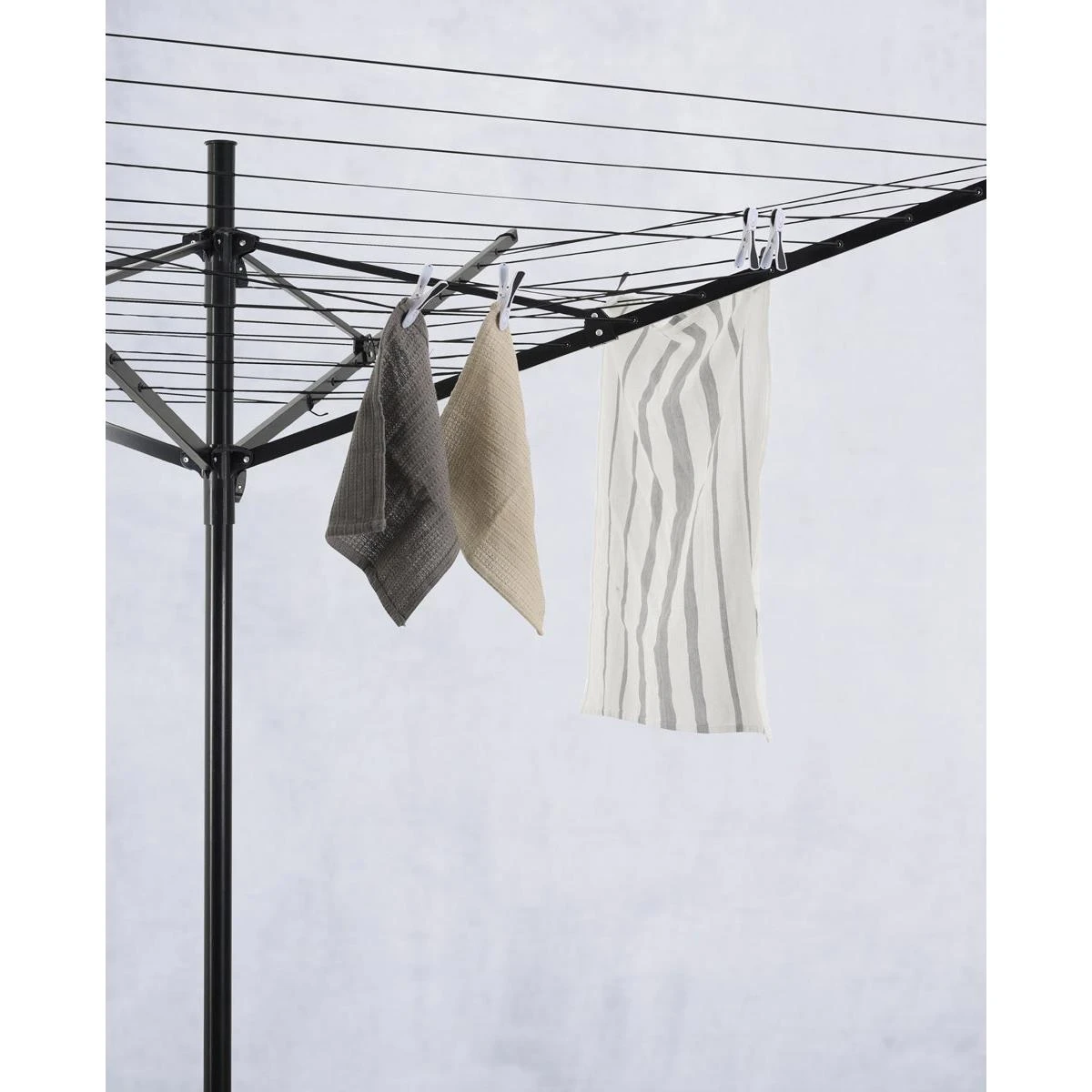 De Ravi droogmolen van Lisomme is gemaakt van metaal en aluminium, en heeft een moderne zwarte kleur. Door de drooglengte van 60 meter kan je wel 3 tot 4 wasjes tegelijk ophangen. Hierdoor bespaar je veel energie en het is ook nog eens beter voor je kleding. Daarnaast is de droogmolen ook ideaal om kussens, dekens en dekbedden op te laten luchten. Het bijgeleverde grondanker zorgt ervoor dat de molen stabiel in de grond staat.