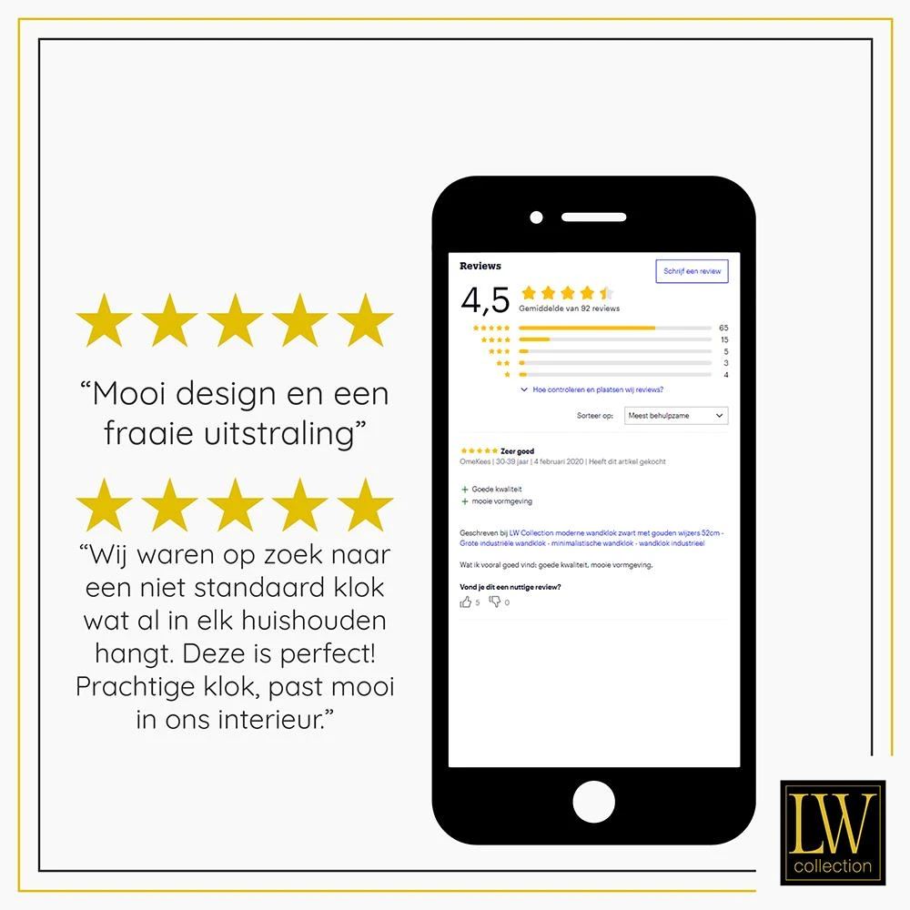 - Hoogwaardige kwaliteit klok van LW Collection. Klokken van LW Collection staan bekend om de hoge kwaliteit en lange levensduur