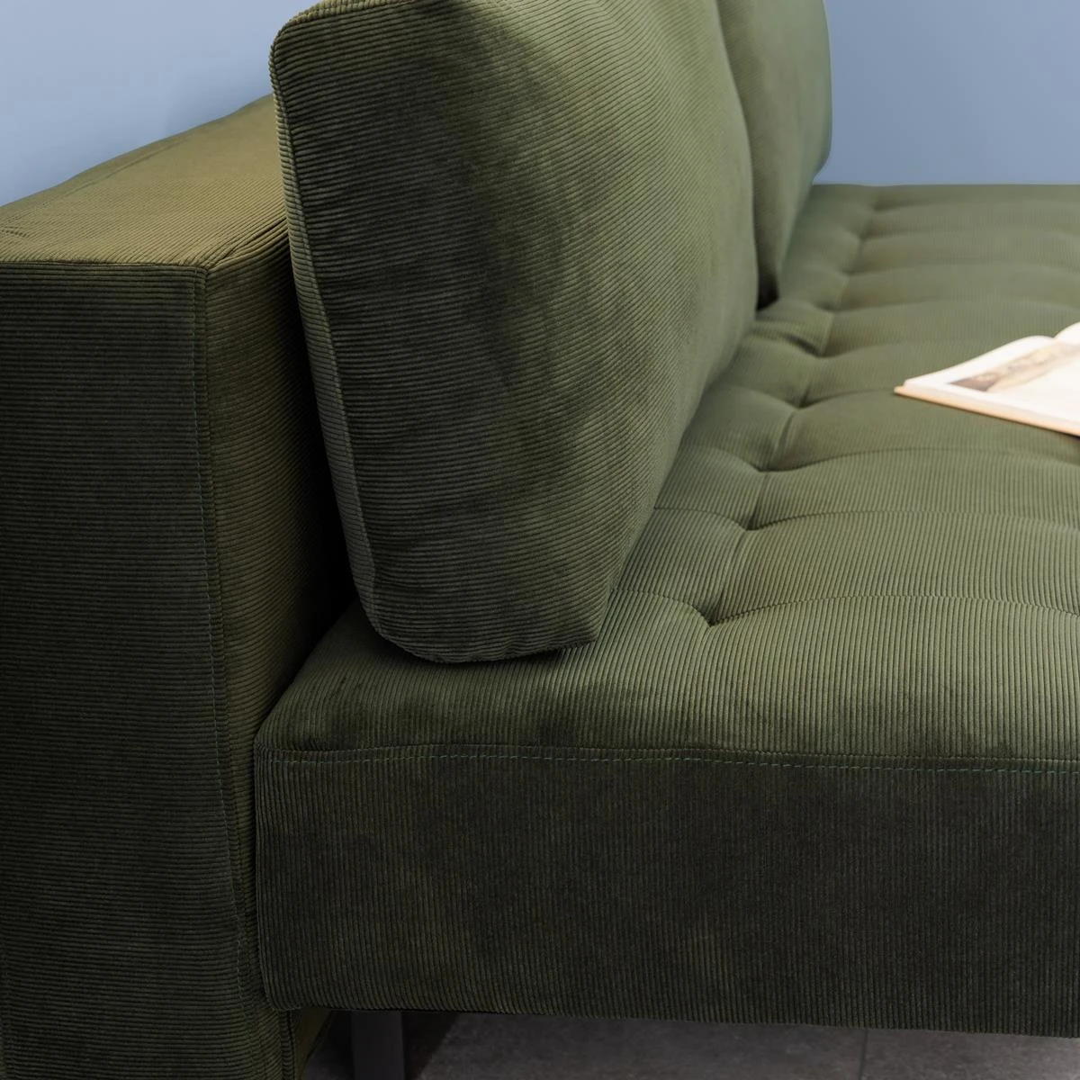 Deze multifunctionele parel is de slaapbank Jules van MOOS. Het bankje ademt retro dankzij zijn formaat, ribfluwelen stof en houten pootjes van rubberhout. En krijg je onverwacht bezoek? Dan klap je de bank gemakkelijk uit tot een comfortabel bed!