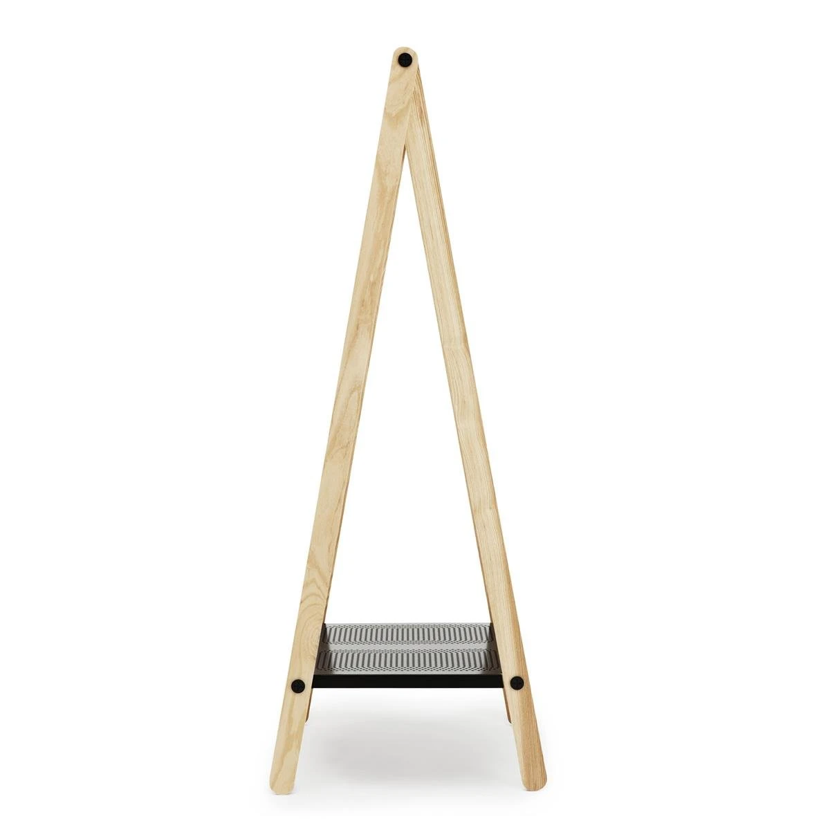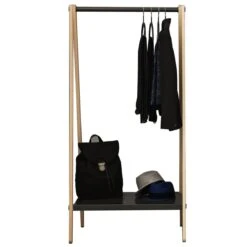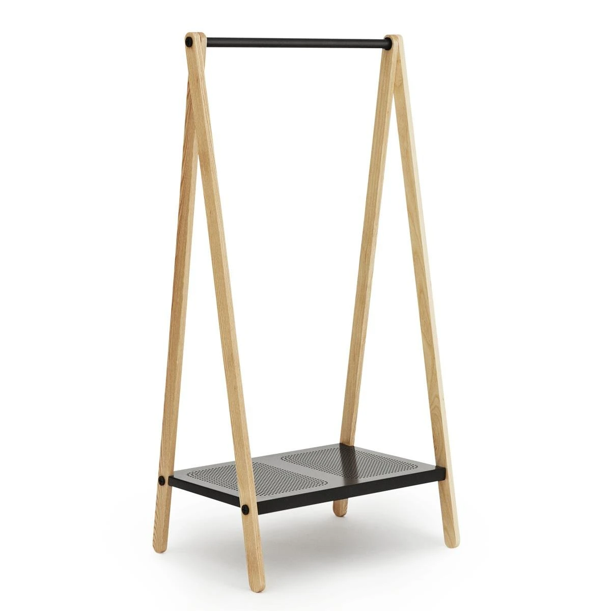 Het idee achter het kledingrek Toj van Normann Copenhagen is om de kast uit de kast te halen. De inhoud van een kast mag best gezien worden, en dat zal zeker goed komen met dit ontwerp. De combinatie tussen hout en staal geeft een moderne look.