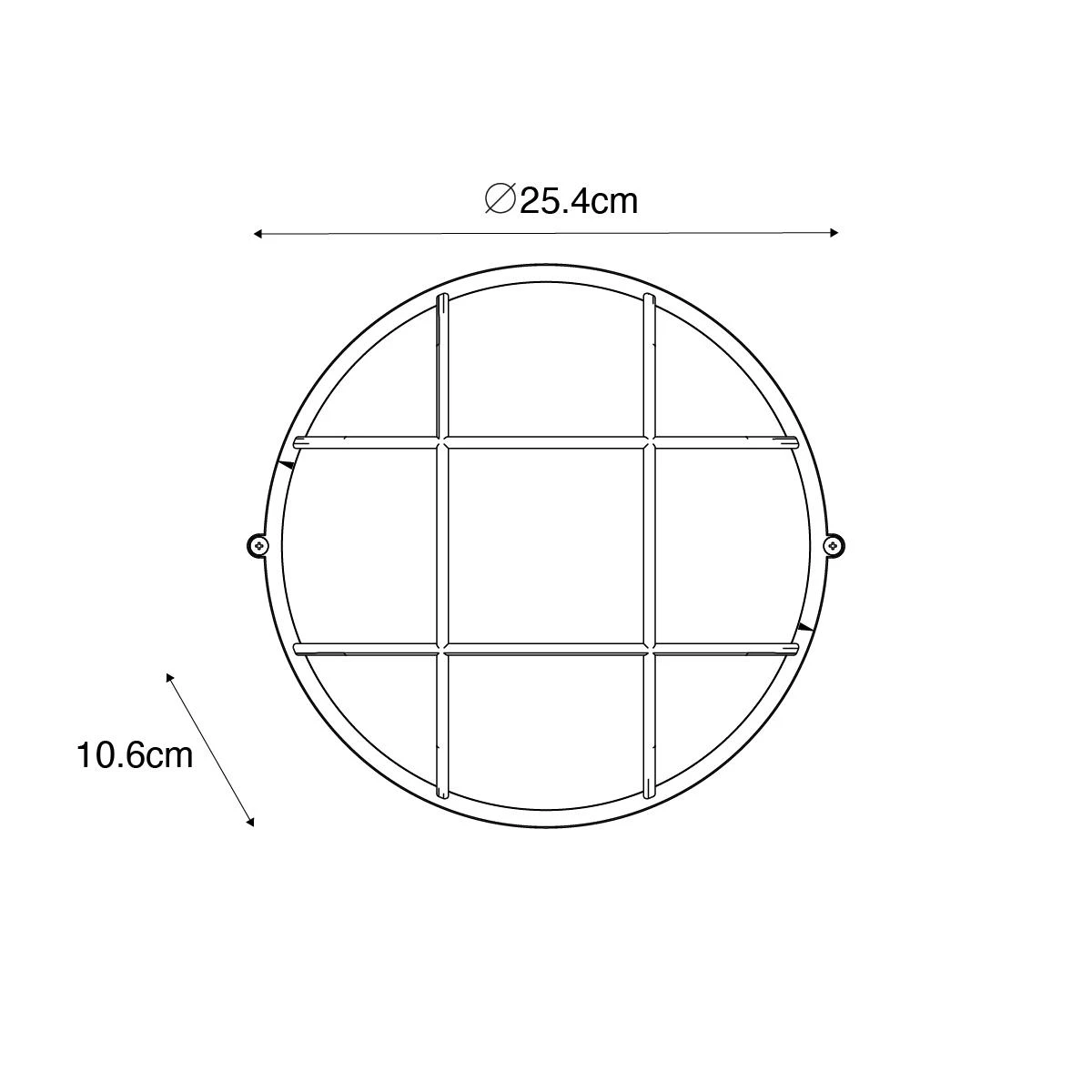 Wat een leuke aanwinst voor in de tuin is Hanneke! De buitenwandlamp heeft een donkergrijze kleur en is gemaakt van aluminium. De diameter van de lamp is 25.4 cm en deze heeft een diepte van 10.6 cm. Vergeet niet nog een lichtbron met E27 fitting er