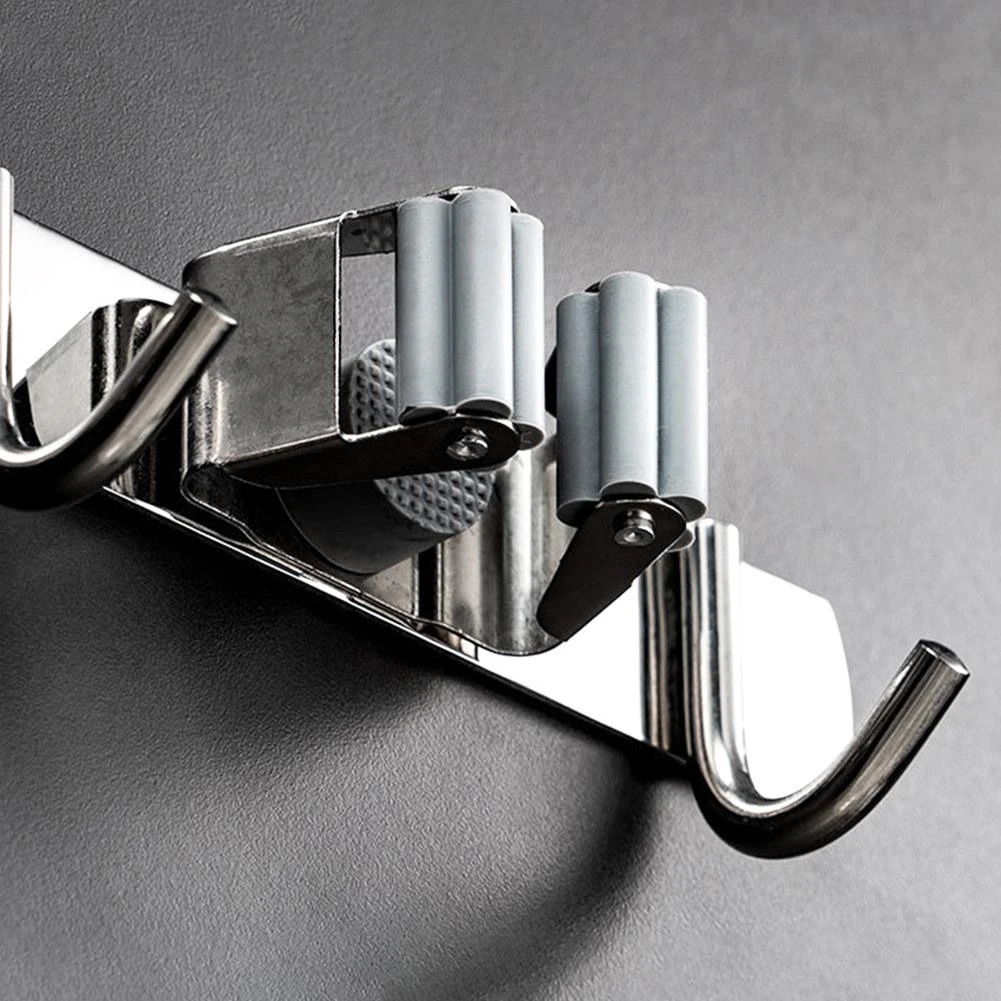 Met 4 klemmen voor bezems, dweilen en harken en 5 haken voor bijvoorbeeld stoffer en blik en tuingereedschap kun je al jouw benodigdheden kwijt. Zo hoef je nooit meer bang te zijn dat je over de bezem struikelt en bespaar je veel vloerruimte.
