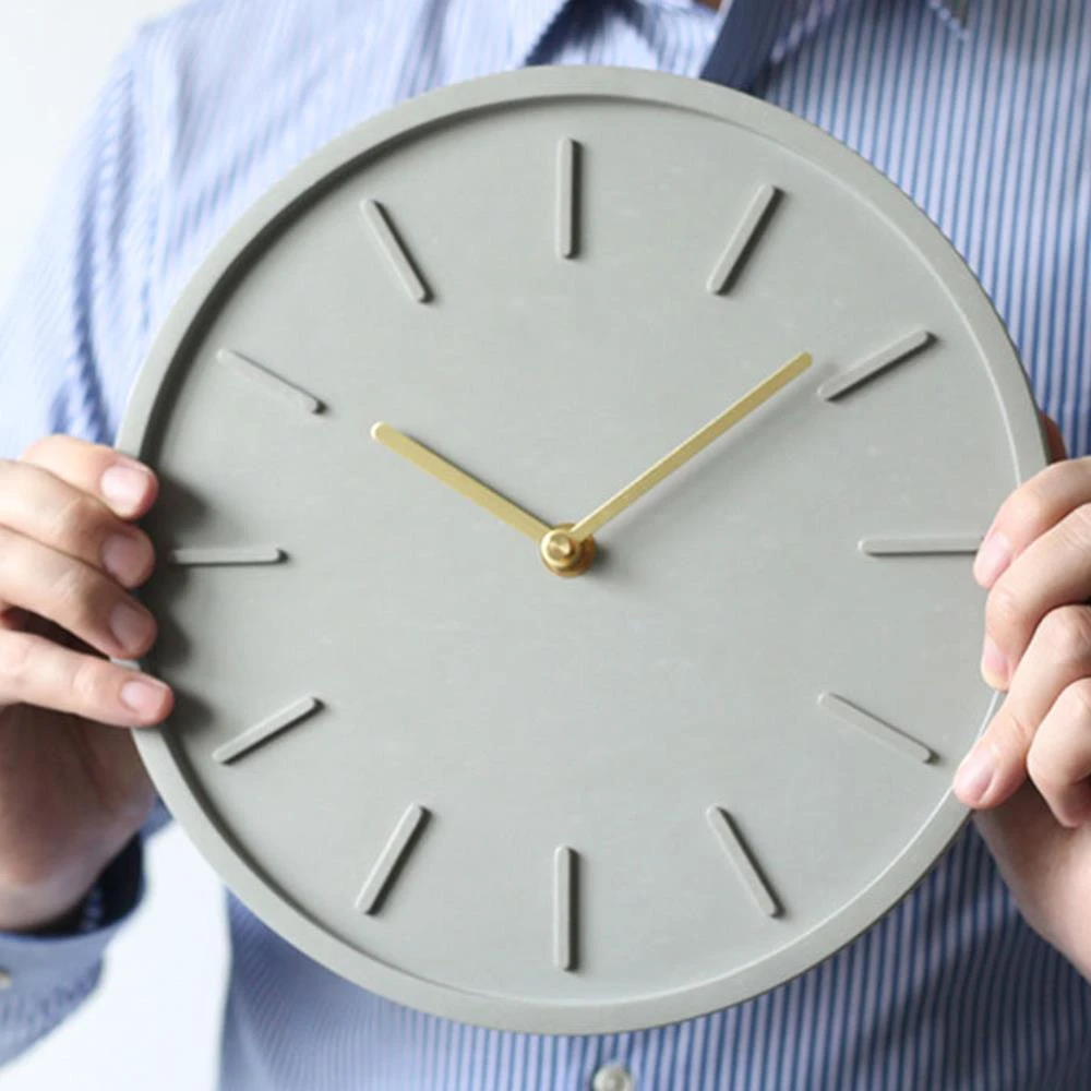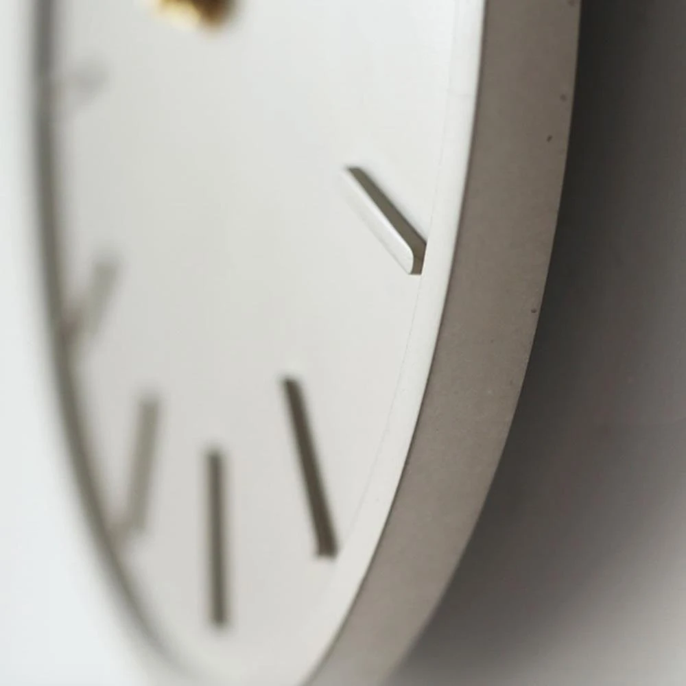 - Deze wandklok is analoog en is wat betreft het materiaal gemaakt van beton. Het feit dat deze klok uit beton bestaat zorgt dat hij erg stevig is.