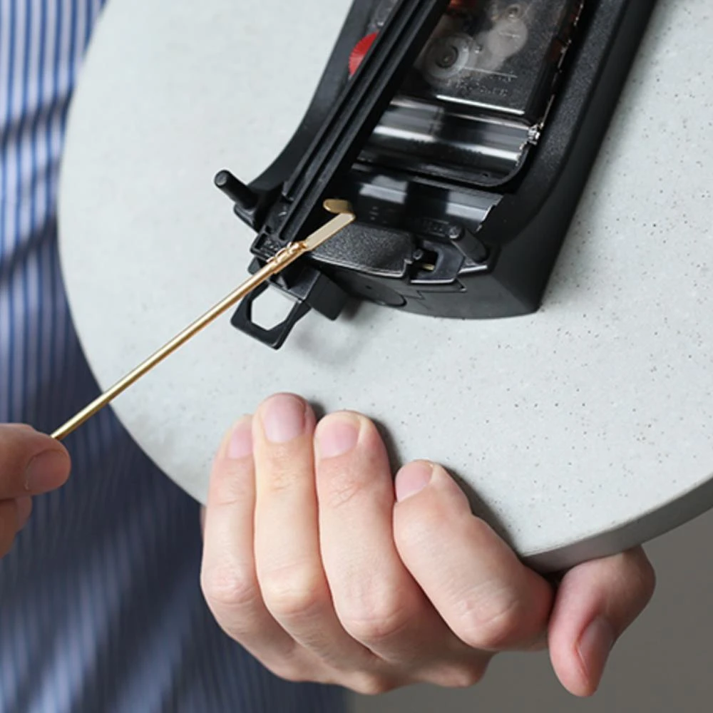- De klok heeft een grijze kleur met goudkleurige wijzers.