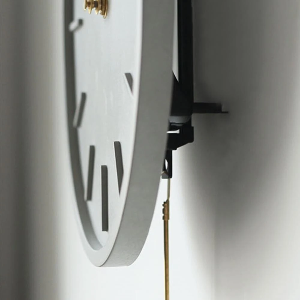 - De QUVIO Wandklok heeft een slinger als detail. Deze slinger is goudkleurig.