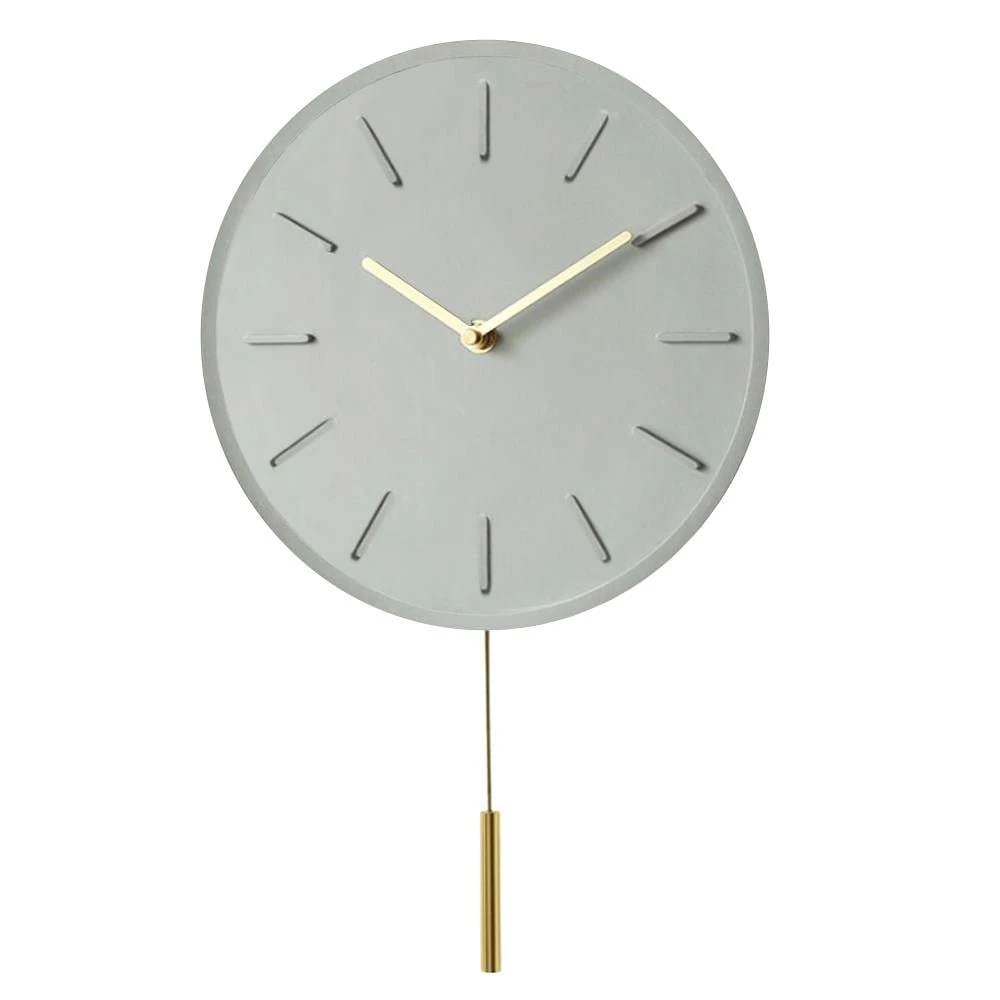 Deze zeer klassieke QUVIO Wandklok met slinger kan een kamer een stuk mooier en eleganter laten ogen. De wandklok is gemaakt van beton en heeft een slinger met goudkleur. De klok heeft een diameter van 30 cm.