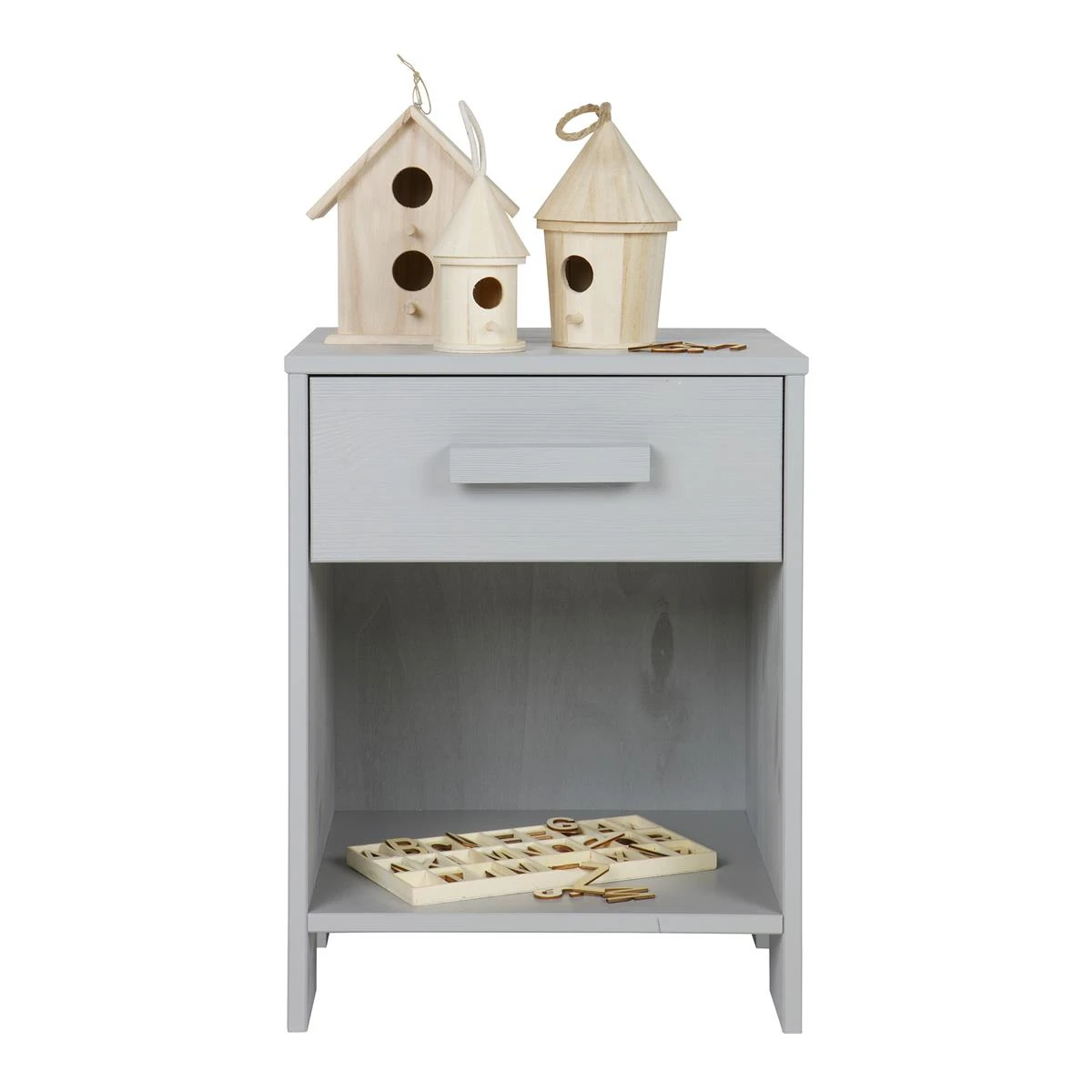 Het Dennis Nachtkastje is een handig en stijlvol houten meubel voor naast je bed. Het kastje is voorzien van een lade en een open opbergruimte. Ideaal voor het gebruik van een nachtlampje of voor het opbergen van je leesboek, bril of telefoon.