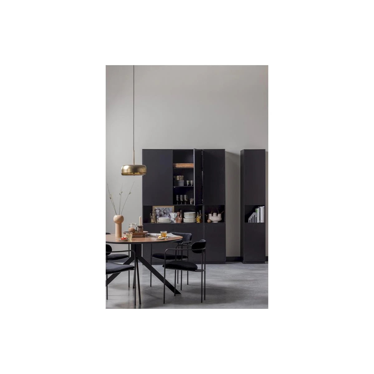 De Finca buffet-/opbergkast 40 cm is de smalle variant, de brede buffetkast is een 2-deurs van 110 cm breed. De bovenste deur dekt drie handige opbergvakken af. Hieronder bevindt zich een open vak voor het presenteren van jouw mooiste woondecoratie. Het onderste deurtje houdt nog eens twee ruime opbergruimten uit het zicht. De zes vakken hebben elk een hoogte van 32 cm, een breedte van 38 cm en een diepte van 37 cm. De onderrand van de buffetkast laat 7 cm ruimte over aan de voorzijde, hierdoor lijkt het meubel te zweven.