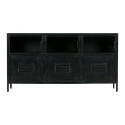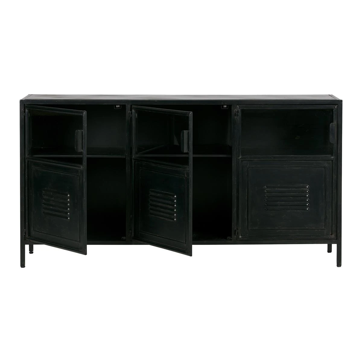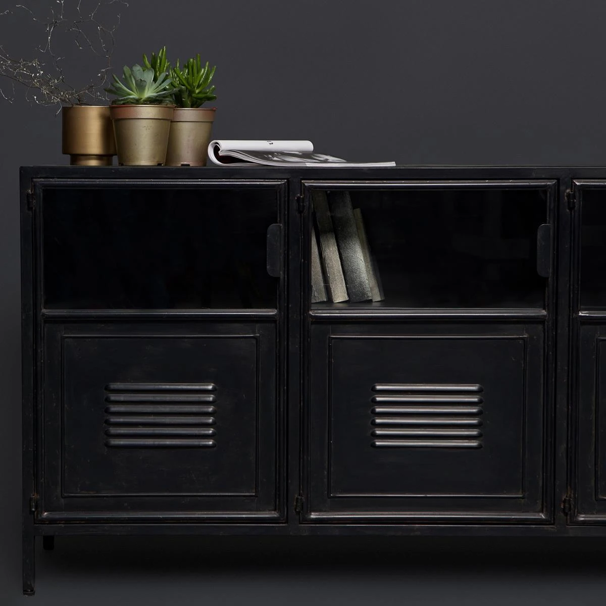 Houd je van industrieel? Dan mag het Ronja dressoir van Woood niet ontbreken. Dit gave dressoir is gemaakt van metaal in stoere zwarte kleur. Je ruimt je spullen eenvoudig op achter de drie deurtjes met handige legplanken.