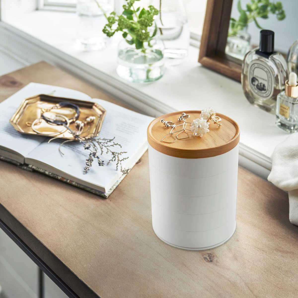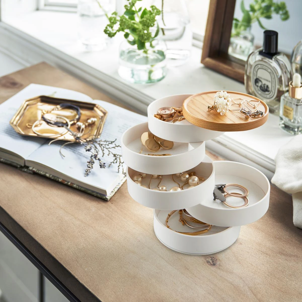 In deze Yamazaki Tosca sieradendoos berg je kostbare sieraden op een overzichtelijke manier op. Hij heeft een elegant ontwerp en heeft toegang door eenvoudig de lades open te schuiven. Een stijlvolle doos die sfeer geeft aan de kamer.
