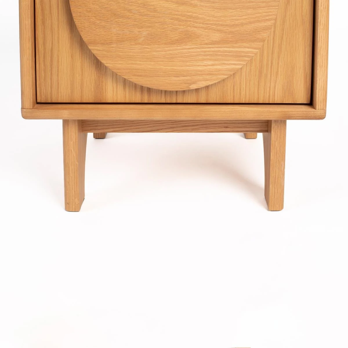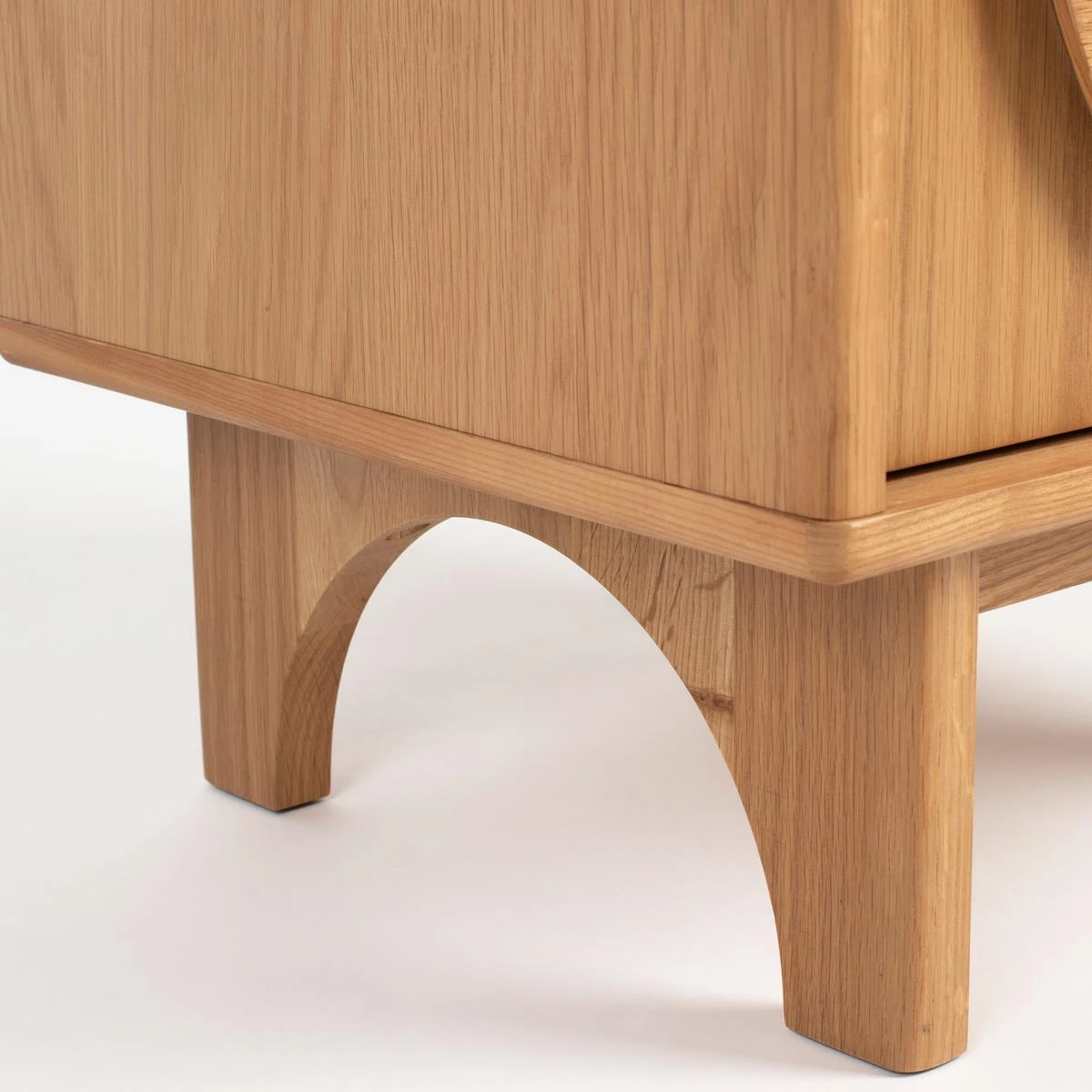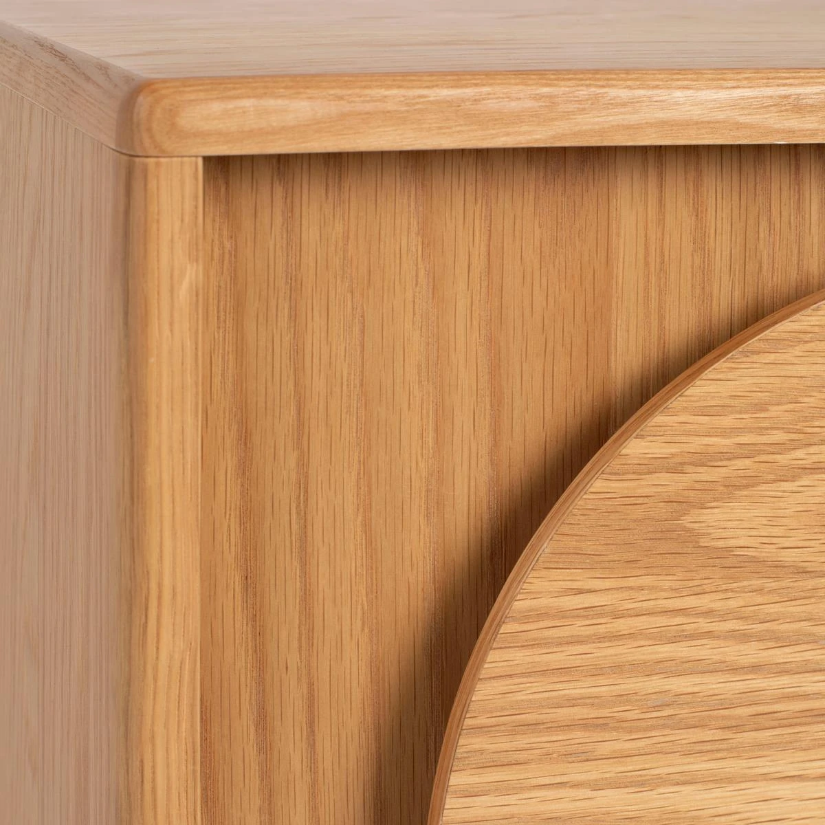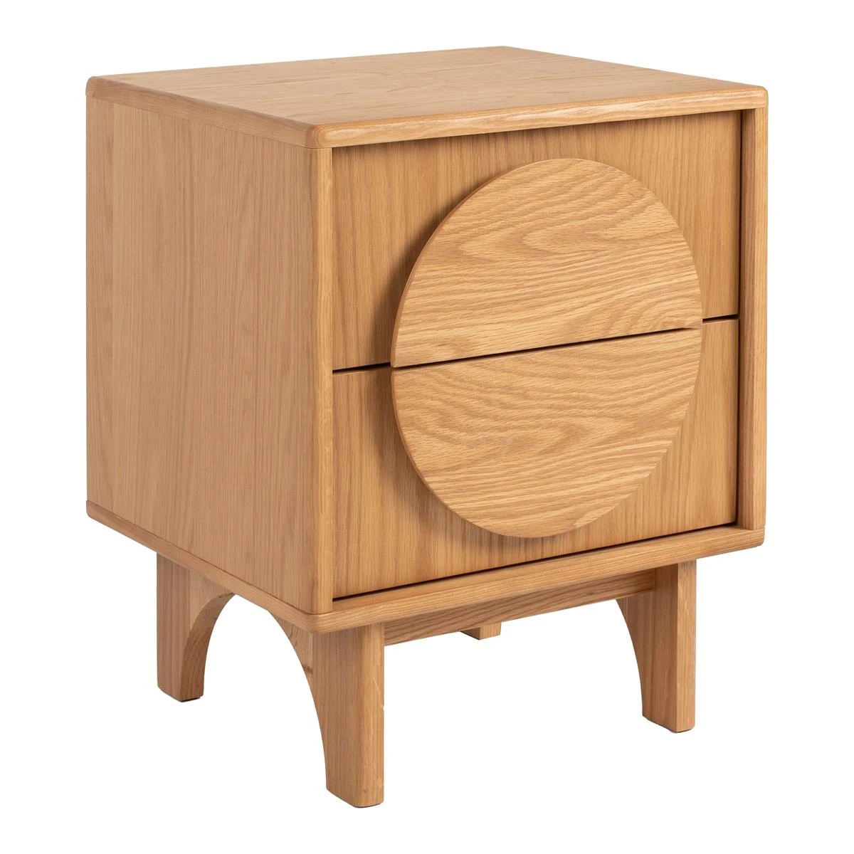Het Zuiver Groove nachtkastje combineert stijlvol, retro design met royale opbergruimte. De deurtjes zijn voorzien van ronde houten elementen en rust op de elegante, ronde poten. Maak het plaatje compleet met een mooie lamp er bovenop!